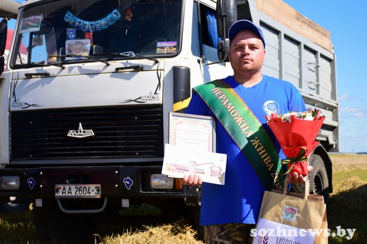 ПЕРВЫЙ В ГОМЕЛЬСКОМ РАЙОНЕ МОЛОДОЙ ВОДИТЕЛЬ, ПЕРЕВЕЗШИЙ БОЛЕЕ ТЫСЯЧИ ТОНН ЗЕРНА, — СЕРГЕЙ МИХАЙЛОВСКИЙ
