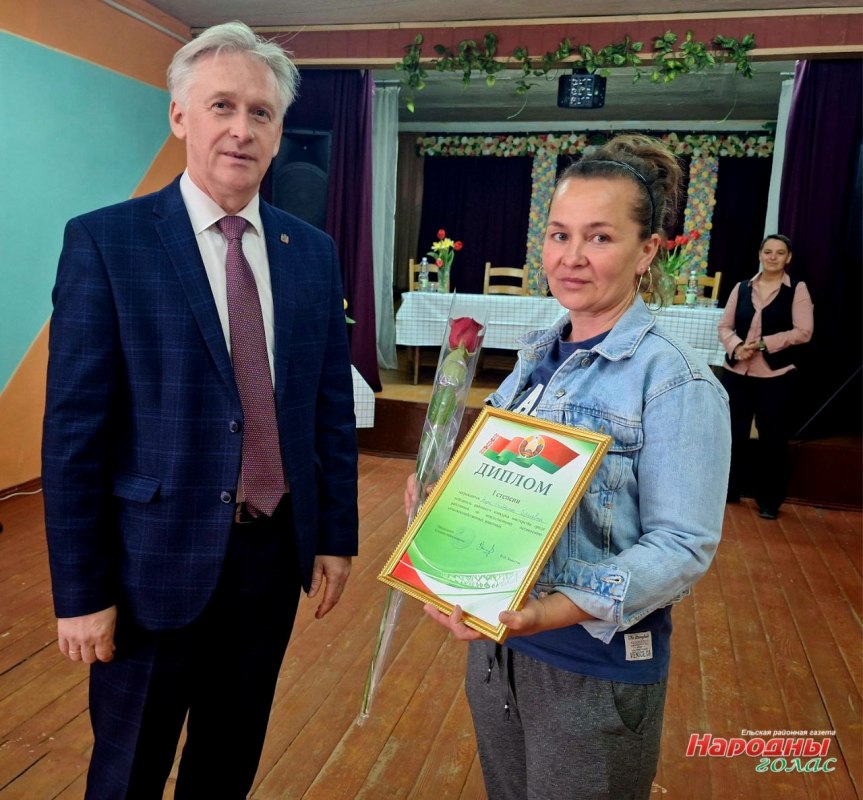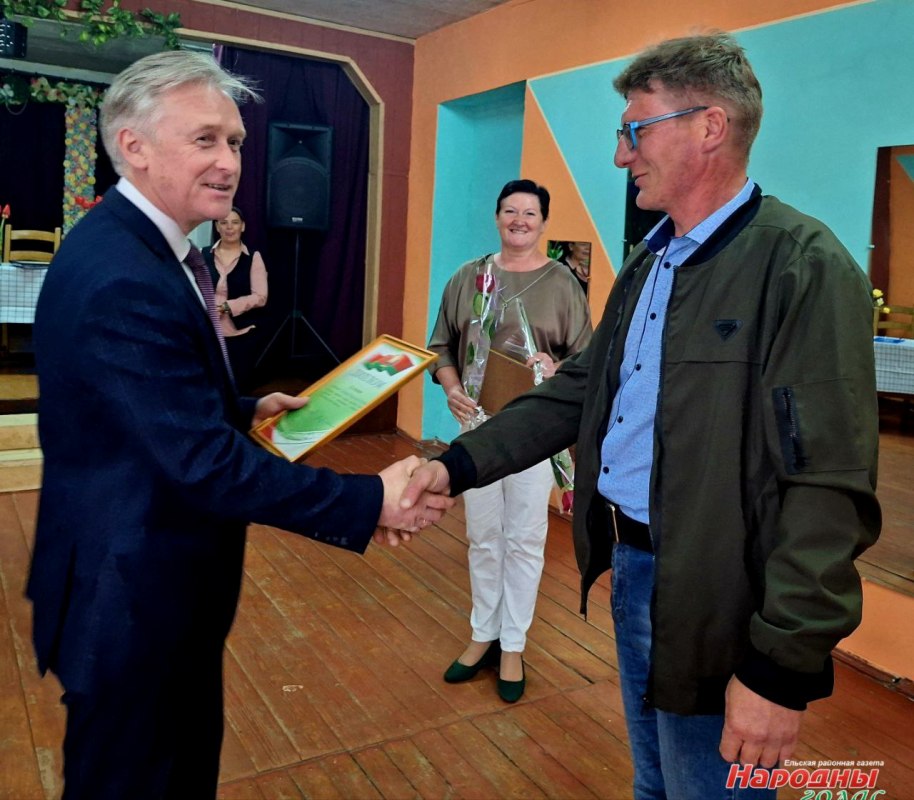 Совместное Благодарственное письмо от районной профсоюзной организации и управления сельского хозяйства и продовольствия Ельского райисполкома получили Владимир Ивашко и Юзефа Латенкова.