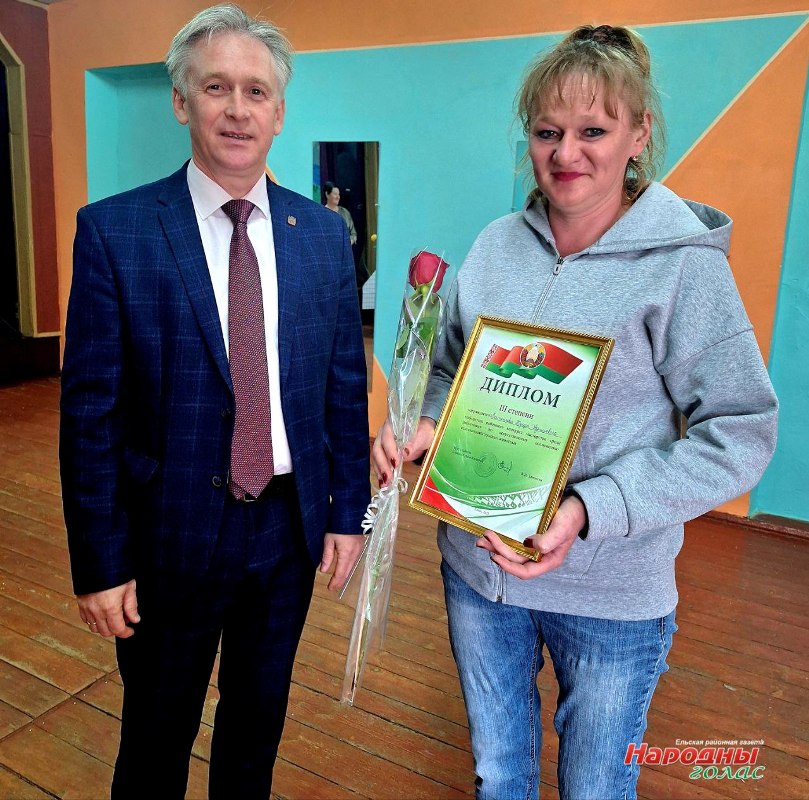 Подарком и Благодарностью от Ельского филиала РСУП «Гомельгосплемпредприятие» отмечена Людмила Хорошкевич, а подарком и Благодарностью от РСУП «Гомельгосплемпредприятие» — начинающий осеменатор из КСУП «Ельск» Инга Кондратенко.