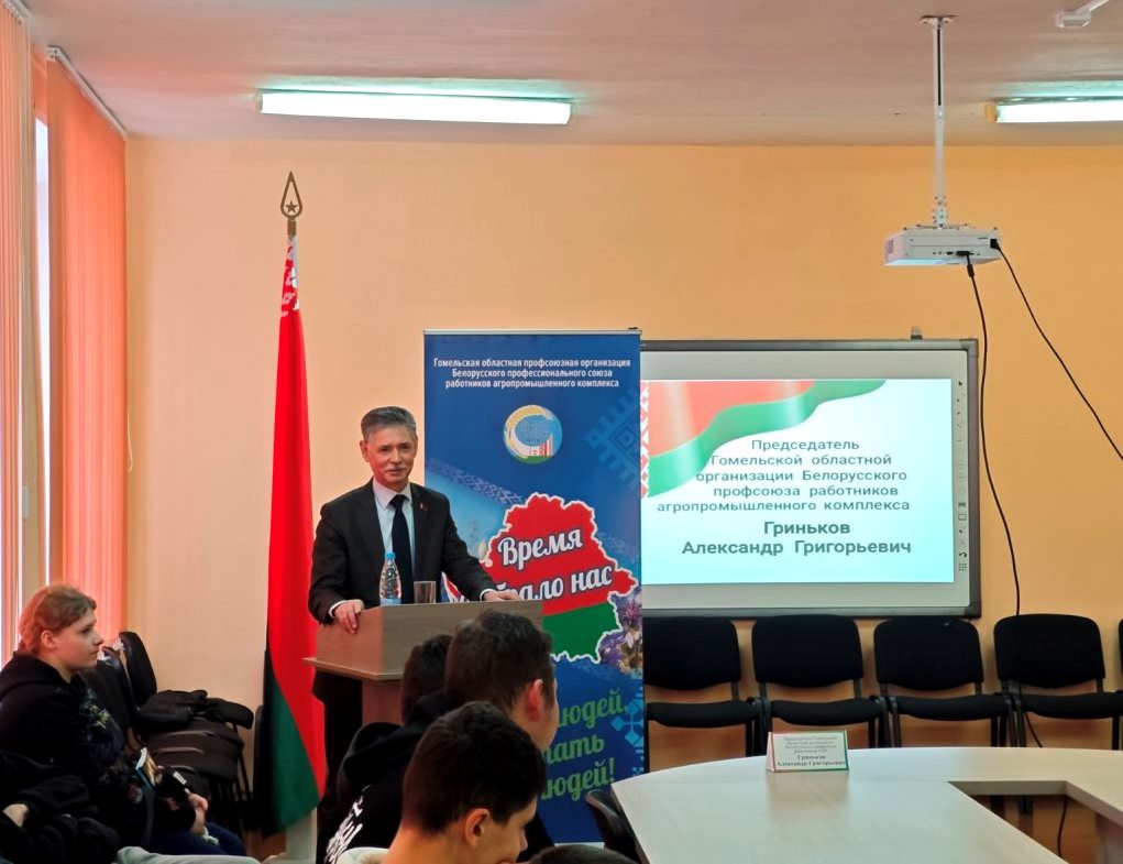 ПРЕДСЕДАТЕЛЬ ГОМЕЛЬСКОЙ ОБЛАСТНОЙ ПРОФСОЮЗНОЙ ОРГАНИЗАЦИИ РАБОТНИКОВ АПК АЛЕКСАНДР ГРИНЬКОВ ВСТРЕТИЛСЯ С ТРУДОВЫМ КОЛЛЕКТИВОМ И УЧАЩИМИСЯ ГОМЕЛЬСКОГО ГОСУДАРСТВЕННОГО АГРАРНО-ТЕХНИЧЕСКОГО КОЛЛЕДЖА