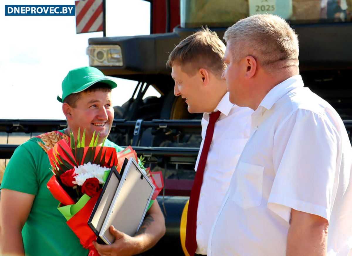 ПОЗДРАВЛЕНИЯ ЗА ДОСТИГНУТЫЙ НАМОЛОТ В 2000 ТОНН ЗЕРНА ПРИНИМАЛ МЕХАНИЗАТОР ИЗ КСУП «АГРОКОМБИНАТ «ХОЛМЕЧ»