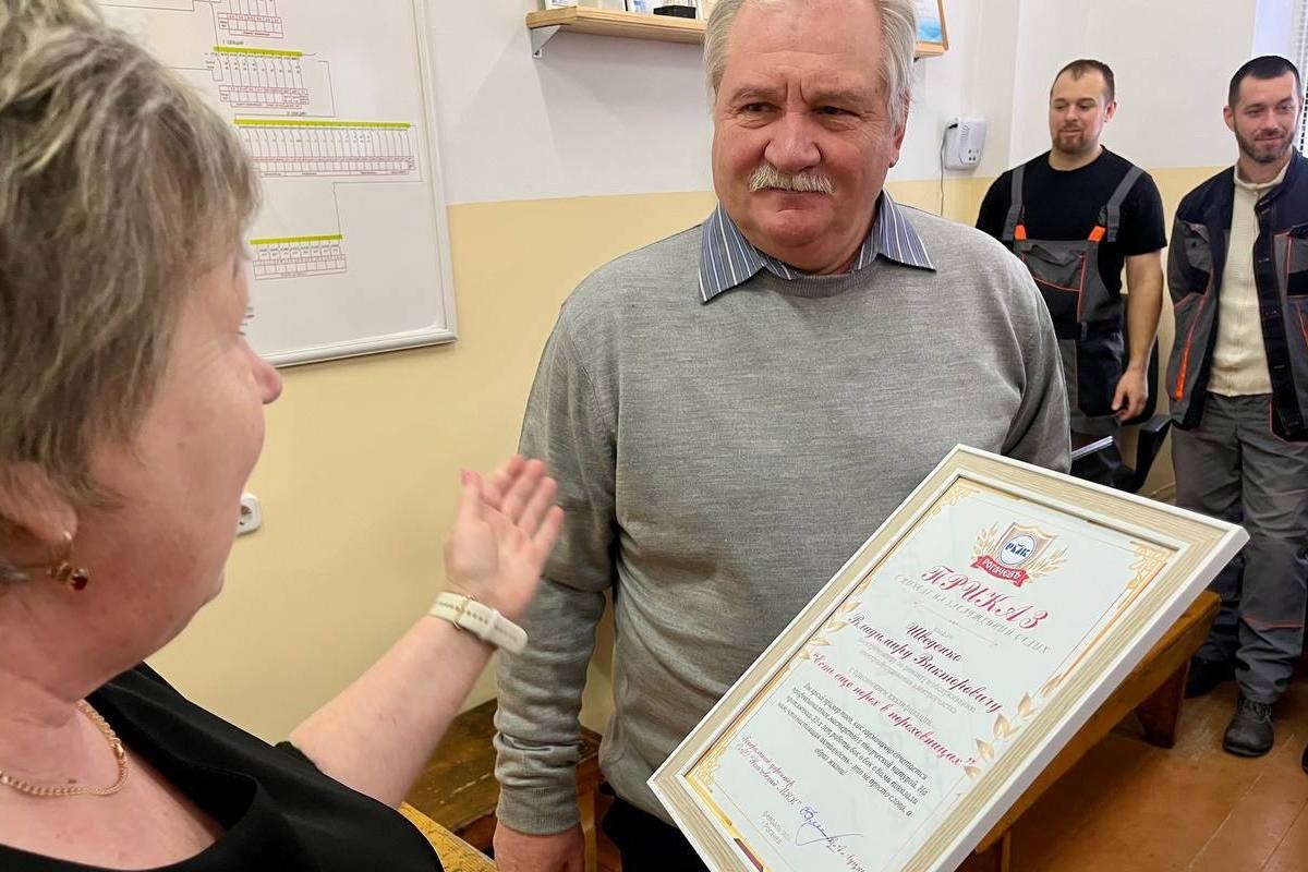 Коллектив Рогачевского молочноконсервного комбината проводил на заслуженный отдых ветерана производства — Владимира Шведенко.