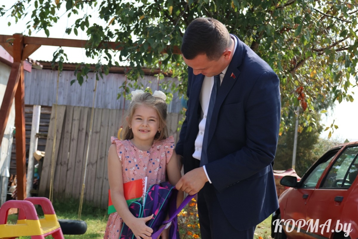 Сегодня особенный день у Доминики Свершовой и Дмитрия Ковалёва, которые совсем скоро станут первоклассниками. Поздравления с приближающимся Днём знаний они принимали от председателя Кормянского райисполкома Дмитрия Шинкаренко и председателя районной профсоюзной организации работников АПК Елены Короедовой.