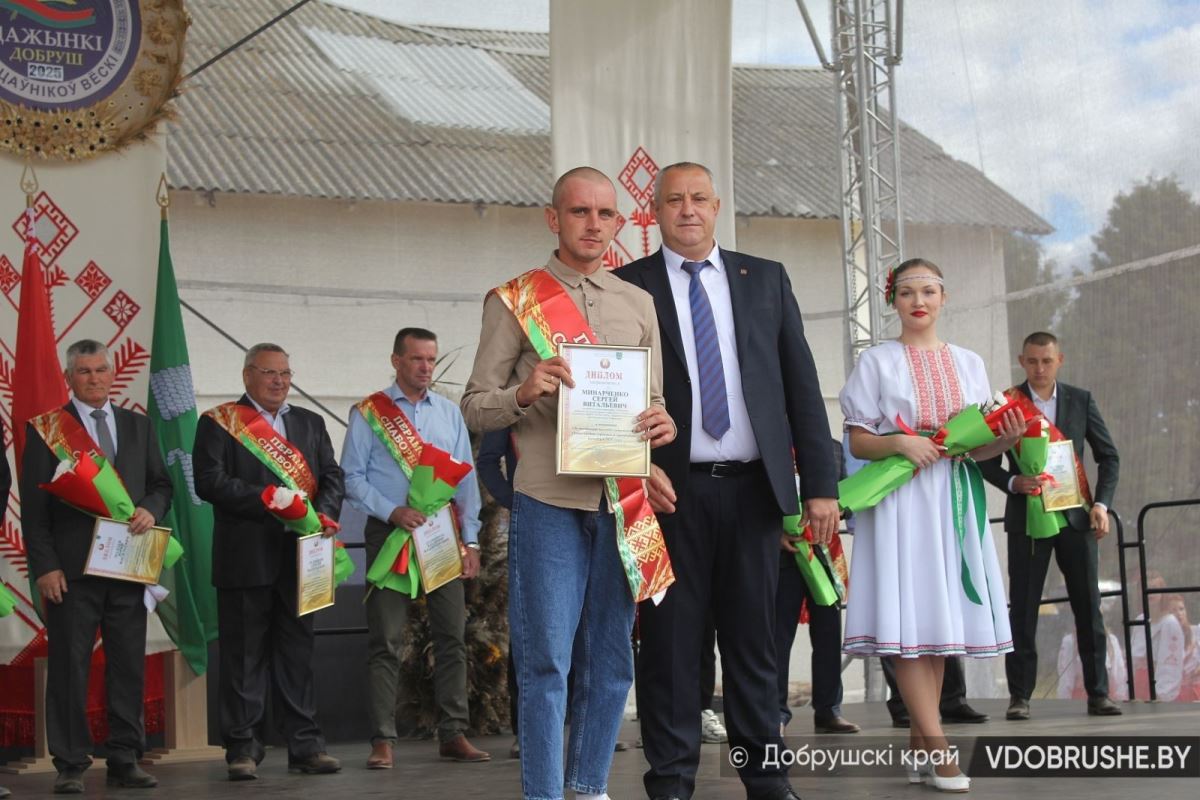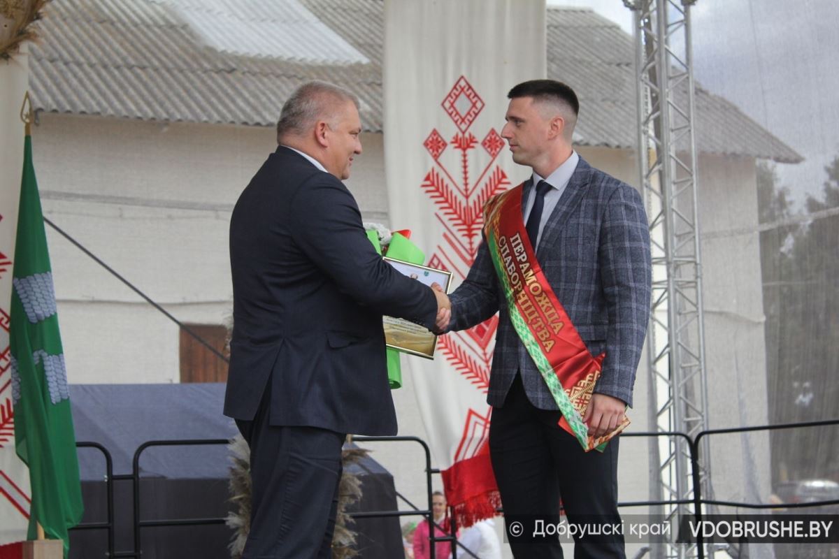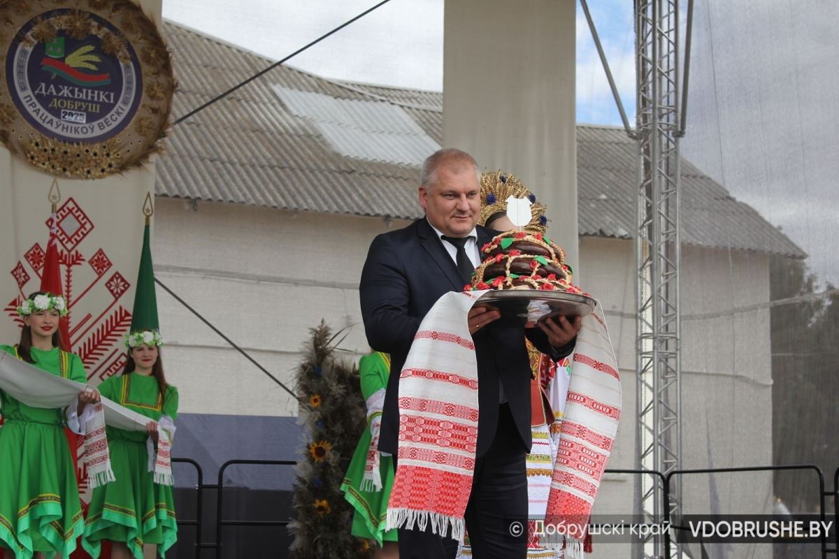 Центральным и самым ожидаемым событием стало поздравление хлеборобов и награждение победителей и призеров районного соревнования за достижение высоких показателей на уборке урожая зерновых и зернобобовых культур. Церемония началась красиво – на сцену вынесли караваи каждого хозяйства района, а главный символ дожинок вручили председателю райисполкома Александру Горбачу.