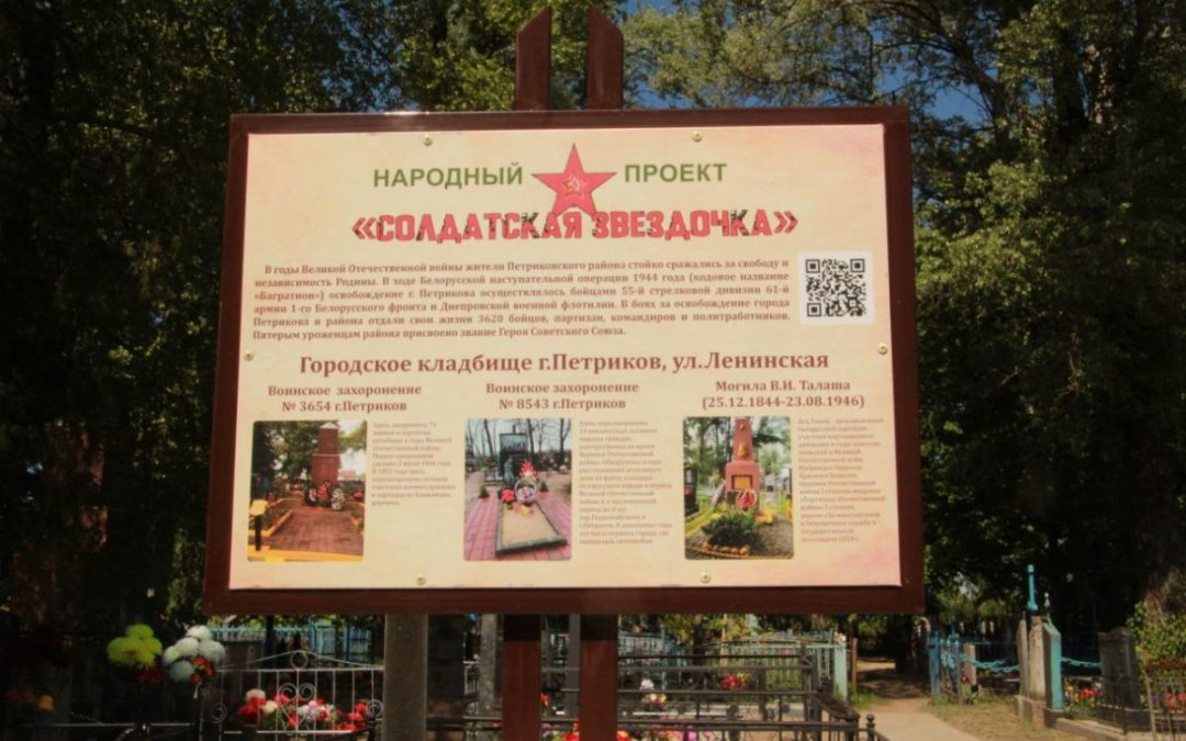 Інфармацыйна-памятны стэнд «Салдацкая зорачка» адкрылі на грамадзянскіх могілках у раенным цэнтры.