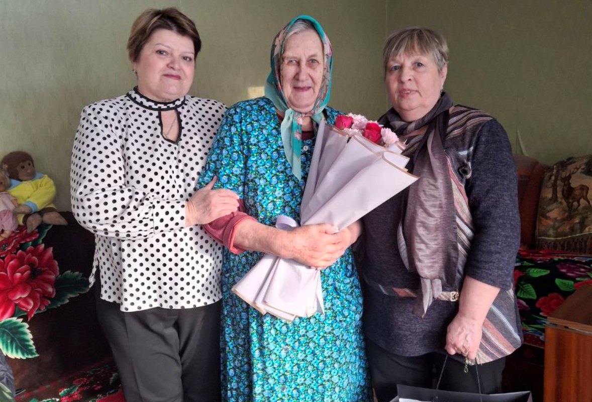 Ветеранам вручили цветы и подарки, пожелав им крепкого здоровья и долголетия.