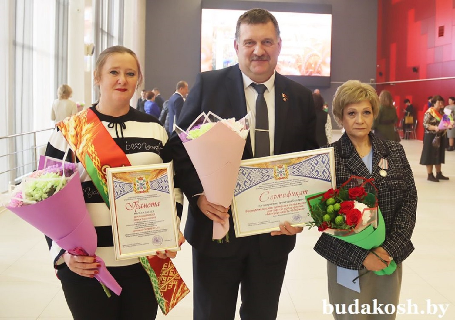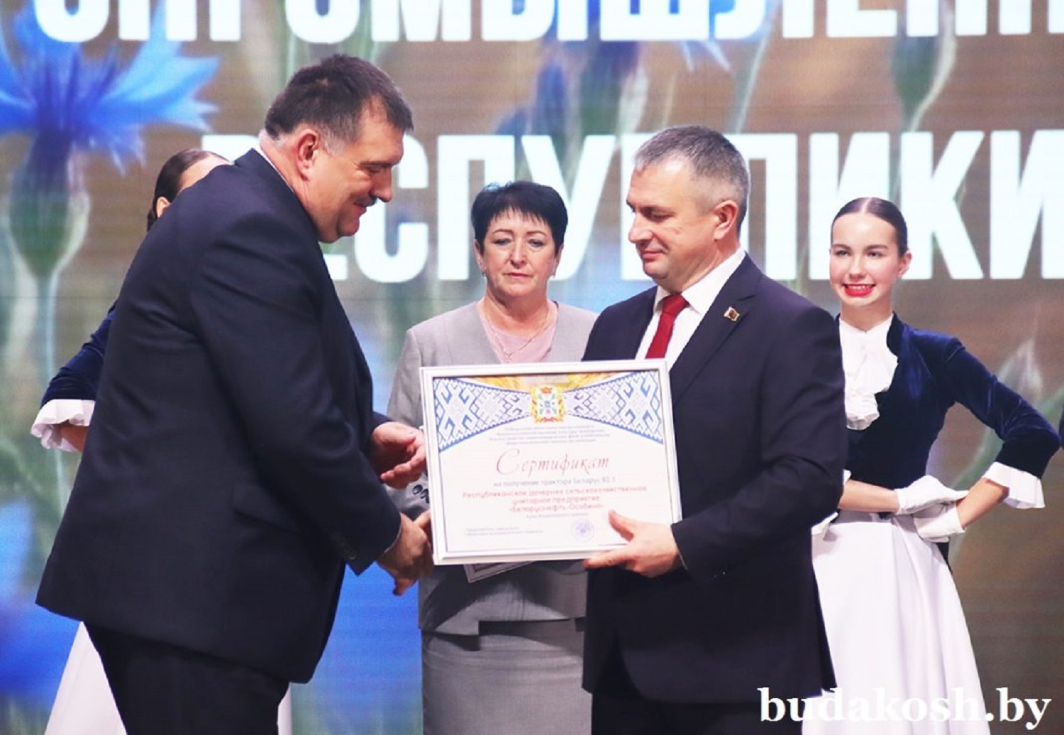 Не первый год в числе победителей областного смотра-конкурса «Землепользование высокой культуры земледелия, благоустройство животноводческих ферм и комплексов» среди сельскохозяйственных организаций трудовые коллективы РУП «Белоруснефть-Особино» и СУП «Морозовичи-Агро». Сертификаты на получение трактора «Беларус» руководителям предприятий Николаю Балабановичу и Александру Хаврученко вручил Иван Крупко.