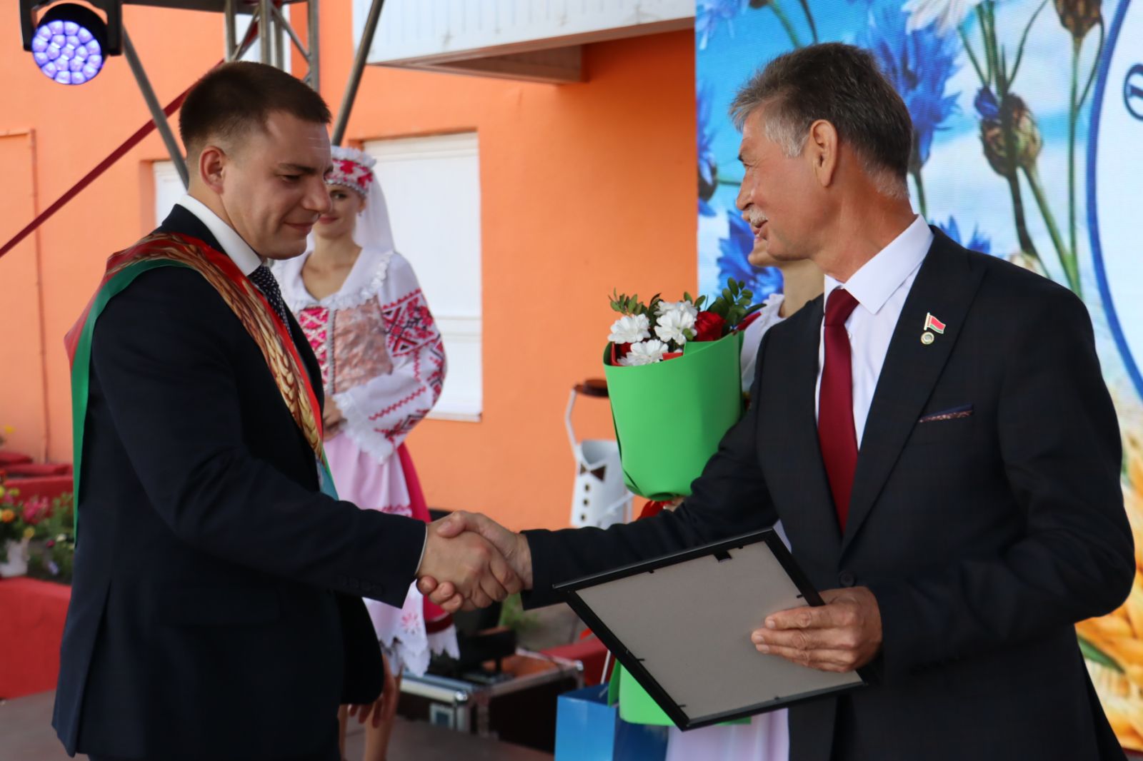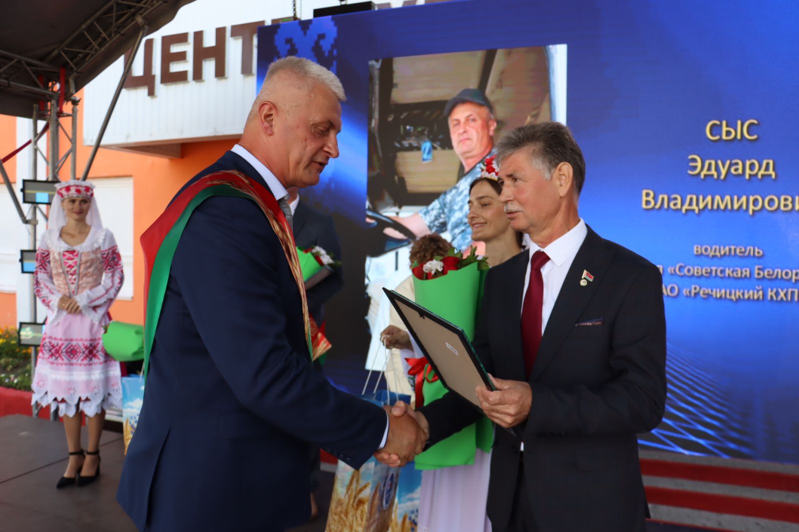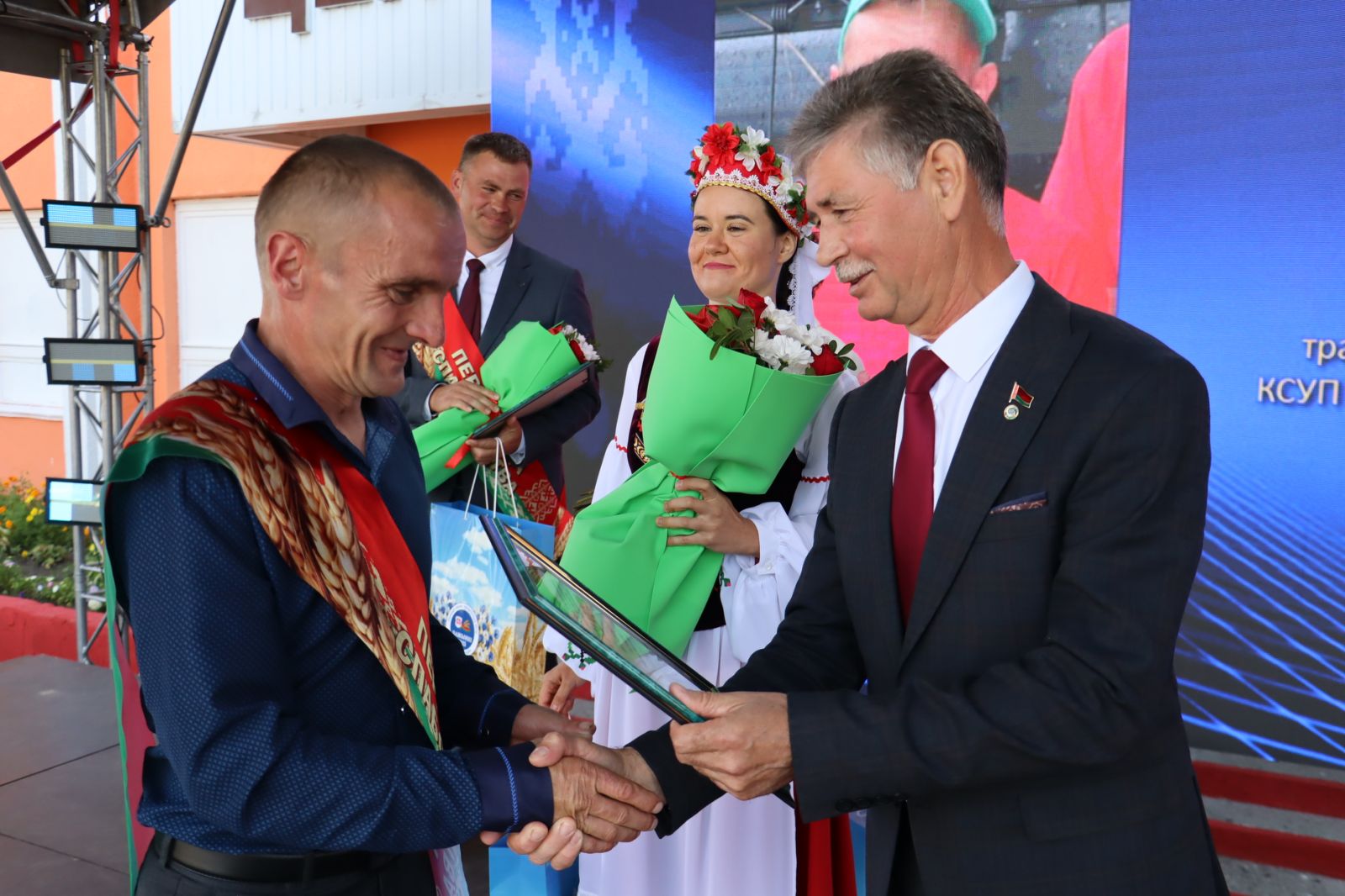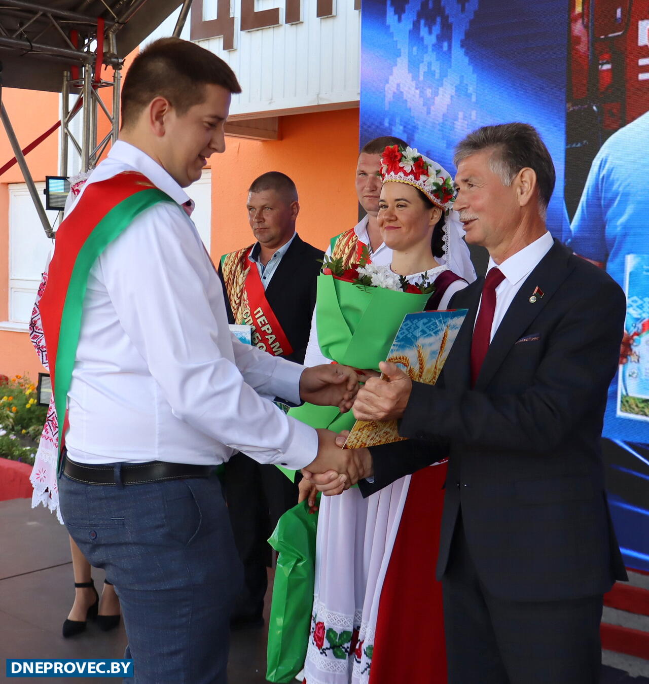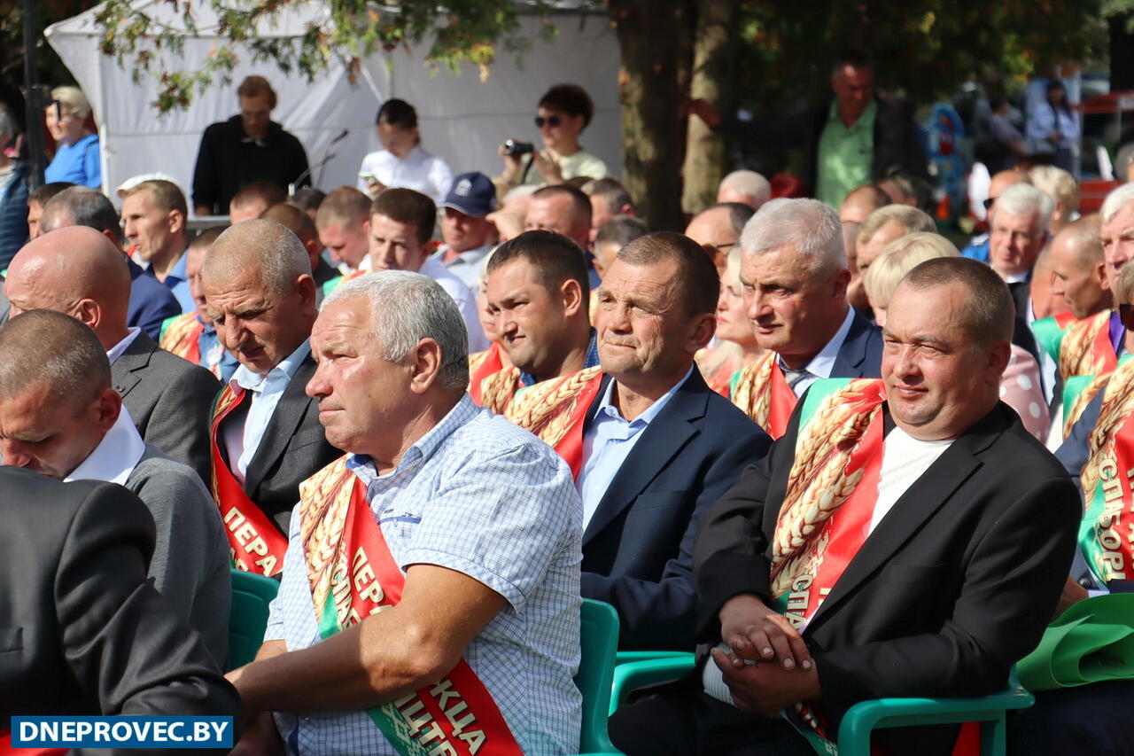 Участие в празднике принимают Дмитрий Петрожицкий, первый заместитель председателя облисполкома, Сергей Довгалёв, председатель Речицкого райисполкома, Григорий Якушев, председатель райсовета, Александр Гриньков, председатель областной профсоюзной организации работников АПК, Жанна Чернявская и Олег Цилько, депутаты Палаты представителей Национального собрания Республики Беларусь, руководители и работники сельхозпредприятий района и конечно же хлеборобы.