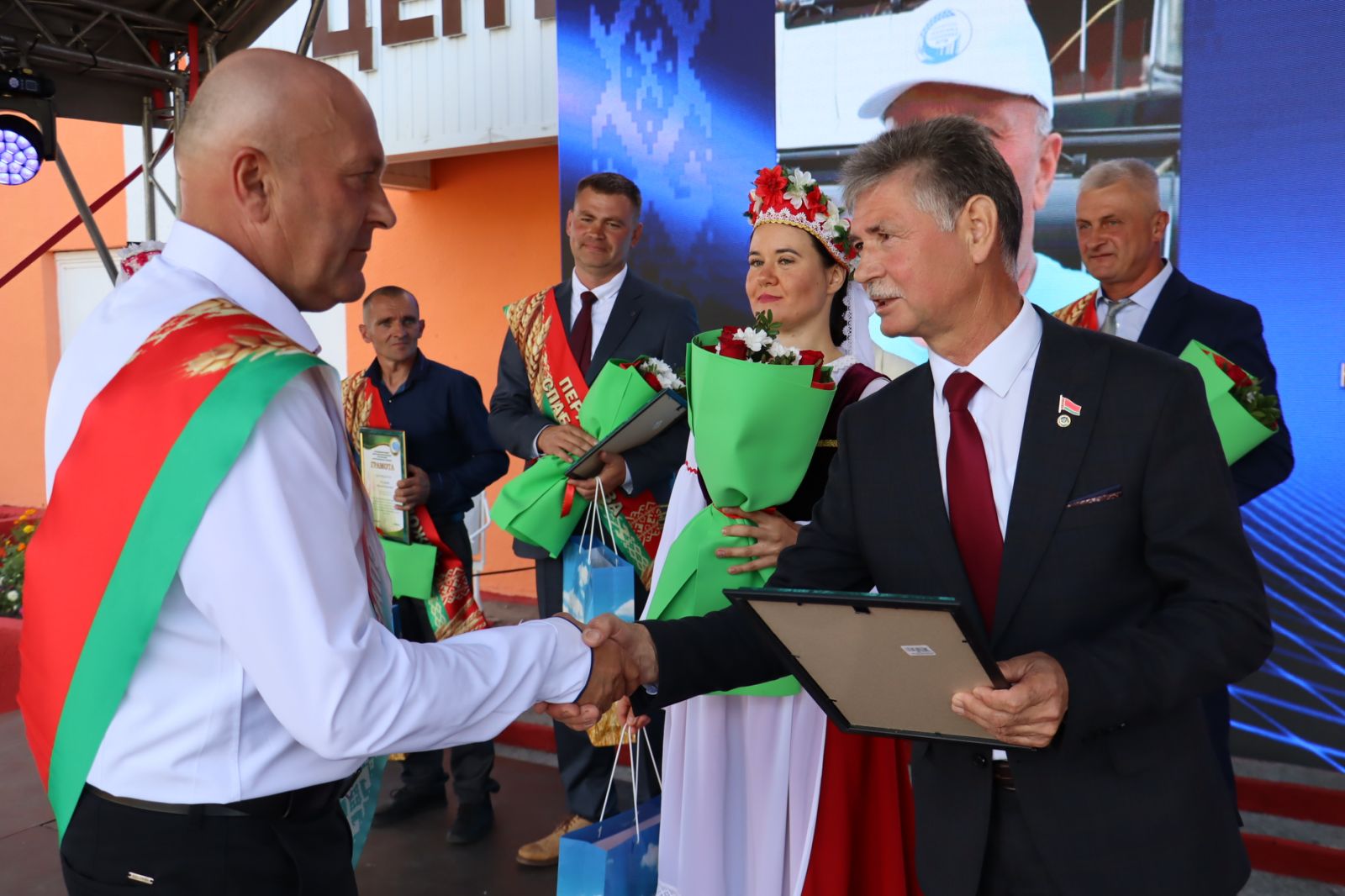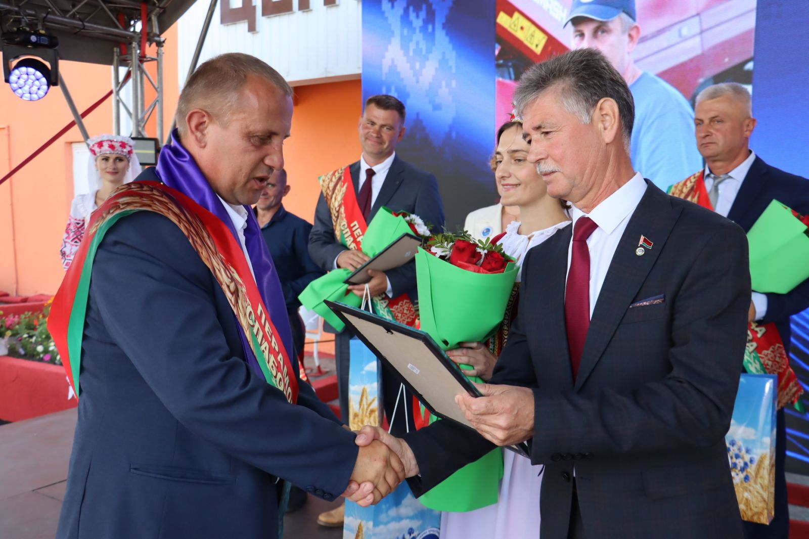 Лучшие хлеборобы сегодня получают заслуженные награды. На сцену поднялось более 100 человек из всех сельскохозяйственных организаций района.