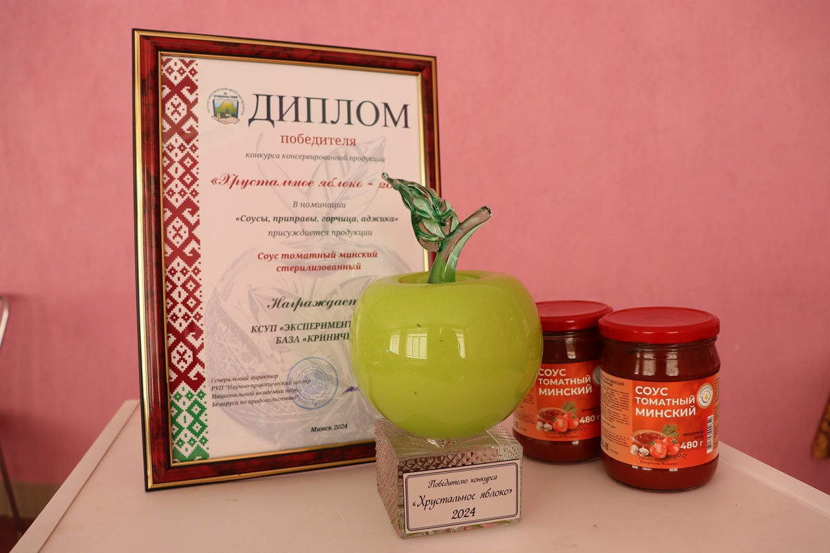 Соус томатный минский стерилизованный принес предприятию победу в номинации «Соусы, приправы, горчица, аджика». Эта награда – закономерный итог большой проделанной работы. Стоит отметить, что это «Хрустальное яблоко» уже второе по счету в копилке наград предприятия. В прошлом году победа была взята за нектар тыквенно-яблочный в номинации «Соки восстановленные, нектары, морсы».