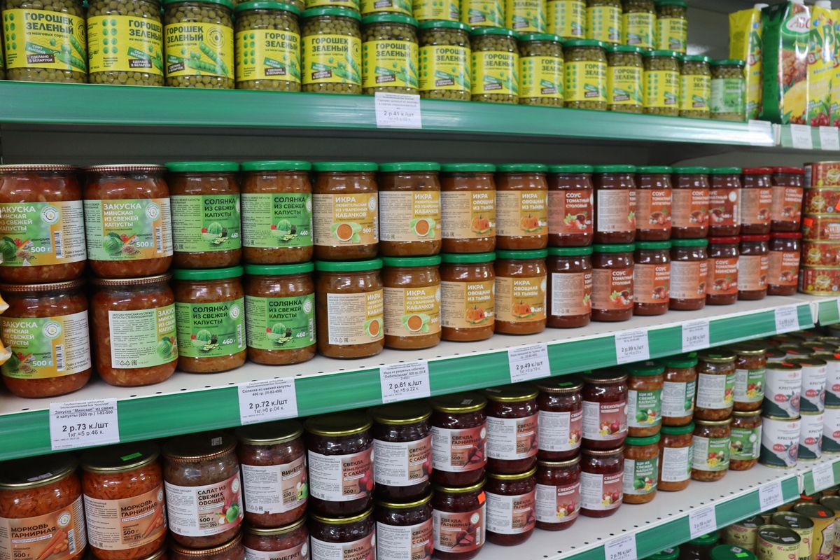 Новый торговый объект относительно небольшой по площади, но местные жители найдут здесь все самое необходимое. На полках – свежий хлеб местного производства, молочные продукты, в том числе и от мозырского производителя, мясные, колбасные, кондитерские изделия, рыба и, конечно же, собственная консервная продукция предприятия. Есть томатный соус, фруктовое повидло, натуральные соки в стеклянной таре.
