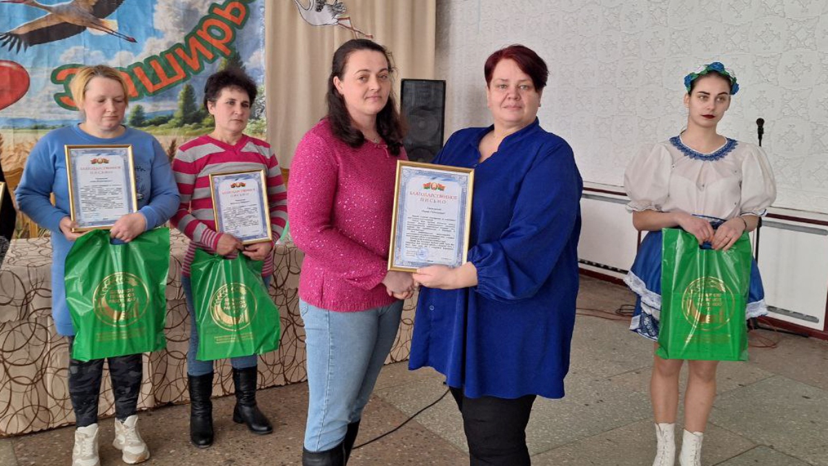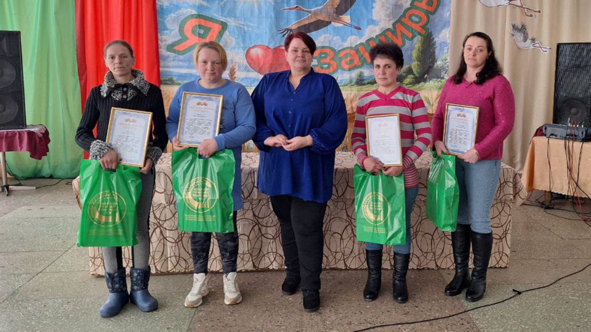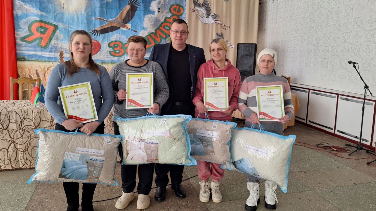 Директор предприятия Дмитрий Баранкевич отметил благодарностями и подарками еще четырех работников: операторов машинного доения Ольгу Игнатенко, Наталью Денисову, Светлану Давидюк и  животновода по уходу за молодняком крупного рогатого скота Сергея Фомина.