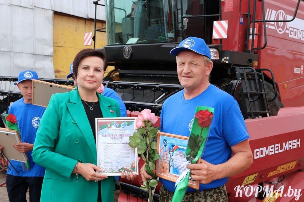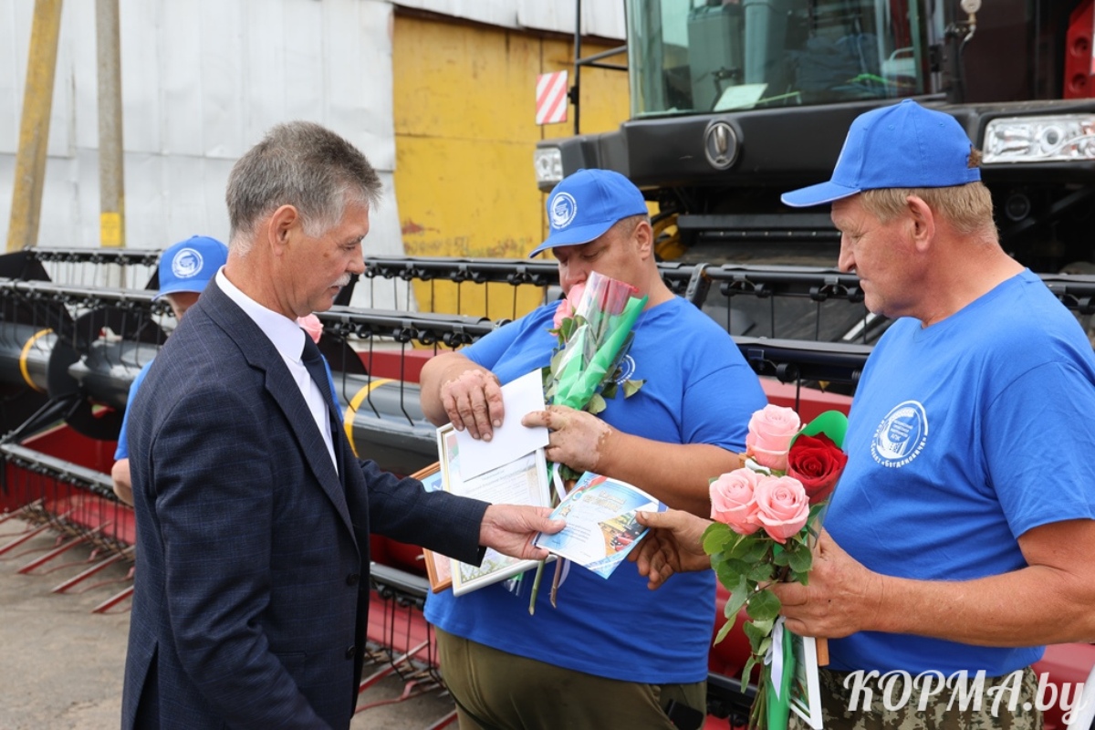 За значительные достижения в уборочной страде поздравления принимали первый экипаж-двухтысячник КСУП «Совхоз «Богдановичи» в составе старшего комбайнёра Владимира Готовского и комбайнёра Дмитрия Воробьева, а также первый на Кормянщине водитель-трёхтысячник из КСУП «Совхоз «Богдановичи» Владимир Чикезов.