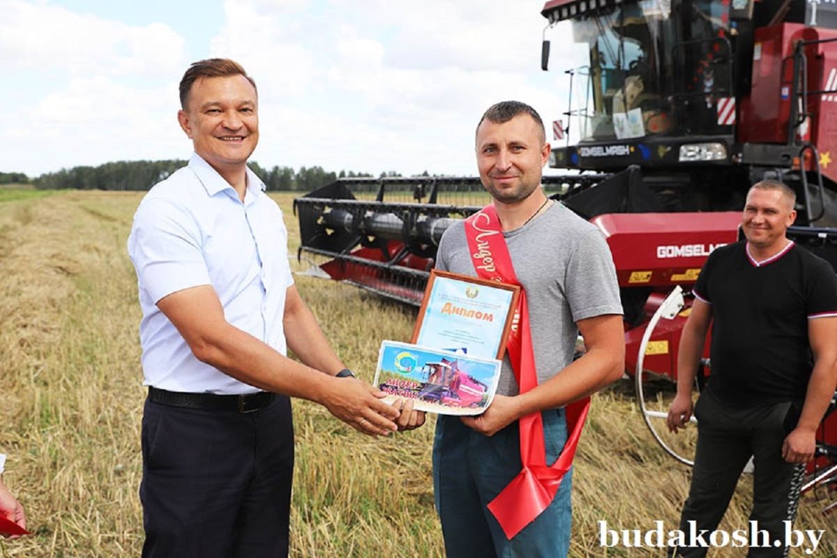 Поблагодарив аграриев за добросовестный труд, Валентин Антонович вручил им памятные ленты «Лидер жатвы-2025» и дипломы районного исполнительного комитета.