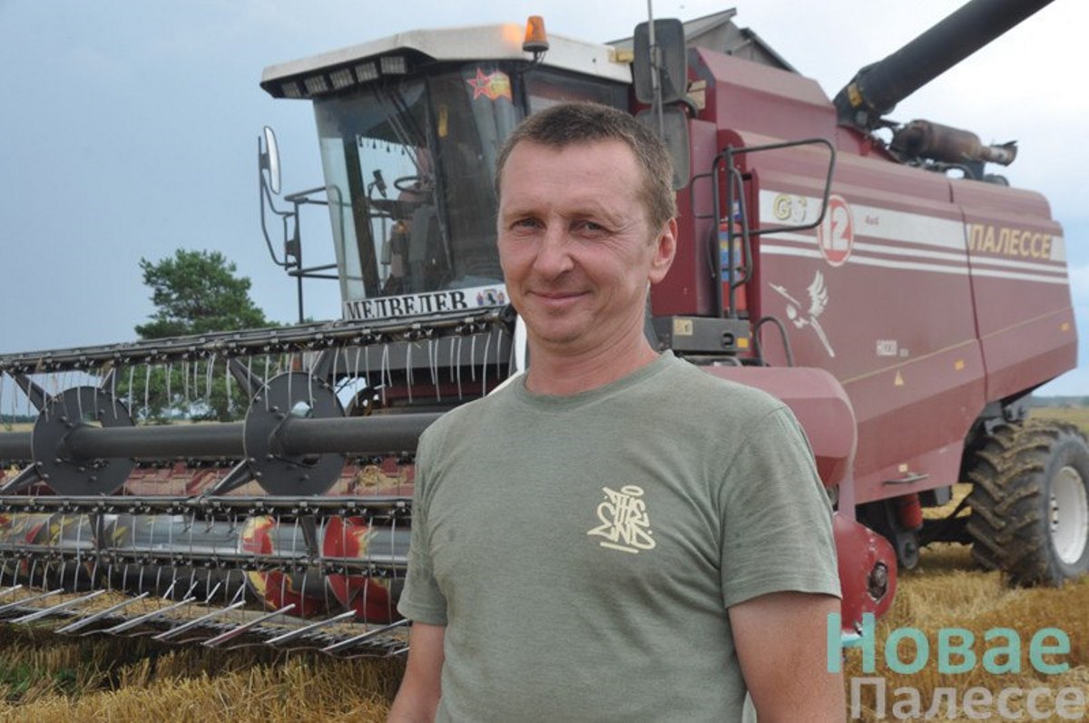 – Гэта мая ўжо дзясятая, можна сказаць, юбілейная ўборка, – гаворыць камбайнер Андрэй Мядзведзеў. – У мінулым годзе быў тысячны намалот, будзе і ў гэтым.