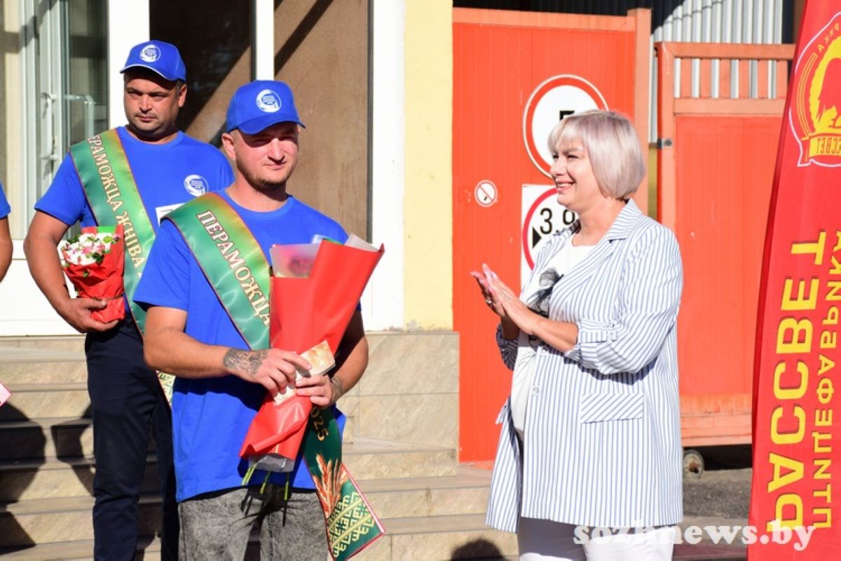 Тружеников ОАО «Птицефабрика «Рассвет» с высокими достижениями от имени Гомельского райисполкома, управления сельского хозяйства и продовольствия, отраслевого профсоюза, администрации предприятия искренне поздравили председатель Гомельской районной организации Белорусского профсоюза работников АПК Ольга Замотевская и заместитель директора ОАО «Птицефабрика «Рассвет» по идеологической работе Виктория Приходько. Благодарственные письма, цветы и подарки вместе с музыкальным поздравлением были вручены лидерам жатвы. А уже на следующий день они вновь выехали в поле, ведь в Гомельском районе жатва продолжается.