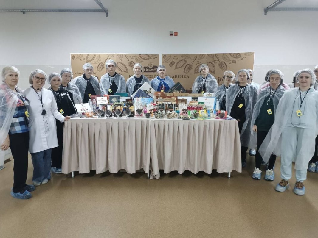 Вместе со своим куратором Гледисой Пархоменко ребята узнали об истории создания фабрики, производимой продукции, технологических процессах изготовления кондитерских изделий, новинках, выпускаемых фабрикой. Все слушали экскурсовода с удовольствием и интересом.