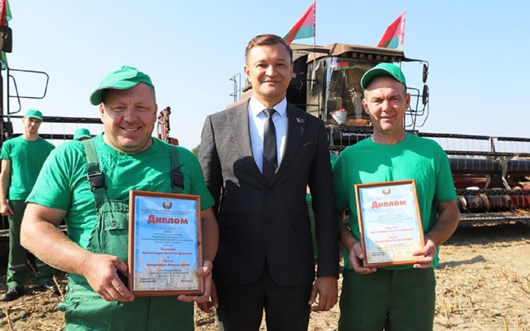 Николай Балабанович выразил уверенность, что еще не один экипаж вольется в когорту лидеров района, и вручил ленты «Лидер жатвы» и дипломы предприятия.