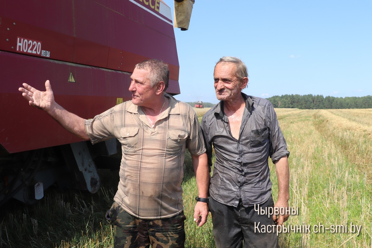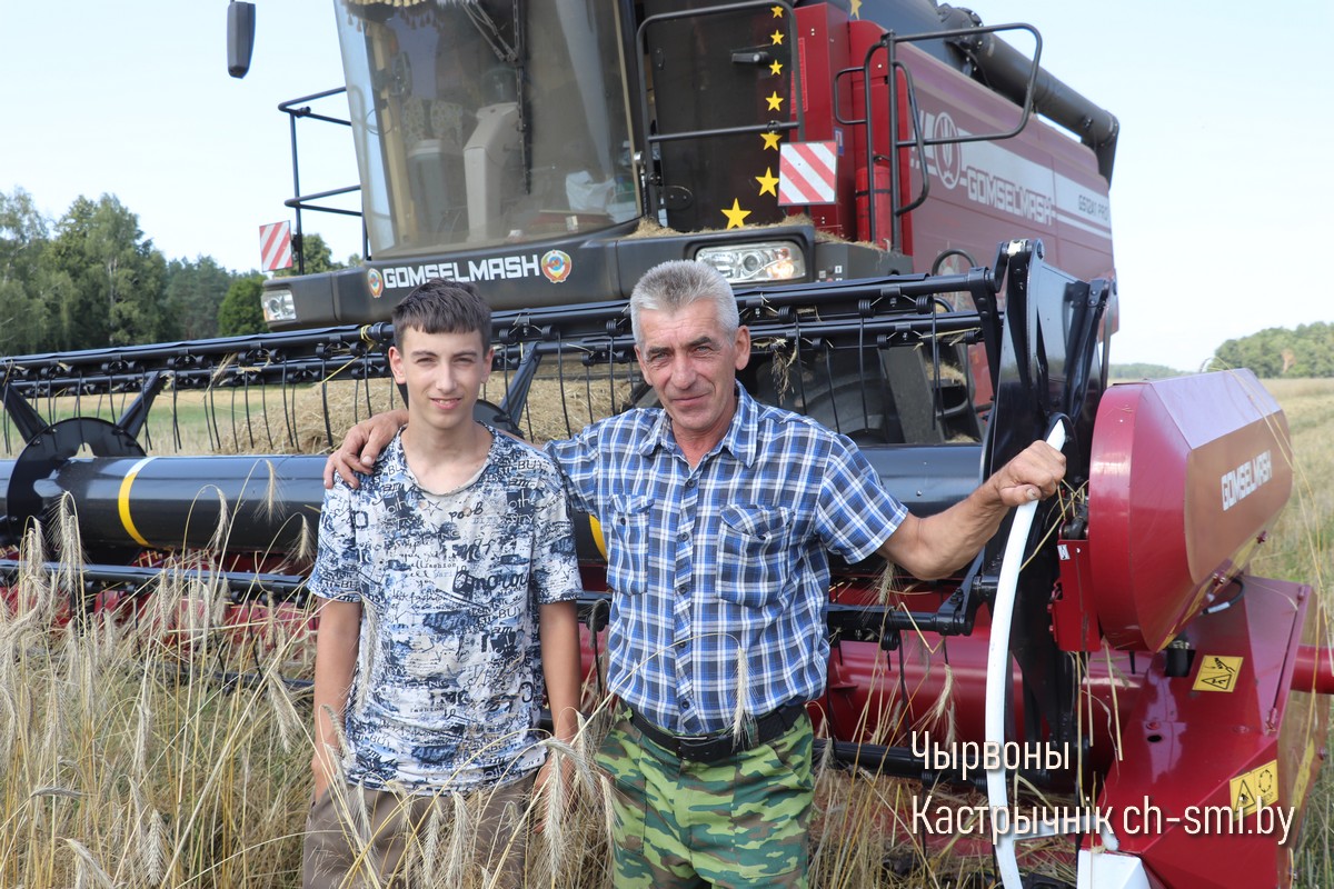 В частности, во вторник, 16 июля, уборочные работы велись на поле в урочище Смуга, где данная колосовая культура занимает 70 гектаров. Чтобы скосить и обмолотить указанную площадь в течение дня, к трем основным зерноуборочным экипажам, которые ранее трудились на жатве озимого ячменя и рапса, добивалось еще два. Обмолот вели единым отрядом комбайнеры Семен Долбик с помощником Егором Пигулевским, Юрий Турков с Михаилом Зуевым, Сергей Долбик с Александром Мельником (это те экипажи, которые трудились нынче с самого начала уборочной страды), а также Николай Перегуд вместе с Владимиром Кротовым и Василий Мельник с Павлом Цалко. Под количество комбайнов соответственно обеспечили и наличие техники на отвозке зерна с поля на зерноток: для этих целей привлечено 4 грузовых автомобиля, в том числе 2 от частных лиц и трактор с прицепом – всего 5 единиц. Такая техническая оснащенность позволяет проводить жатву без простоев в определенном месте, чтобы успешно форсировать темпы уборки с учетом хотя и жаркой, но благоприятной для выполнения этой важной работы.