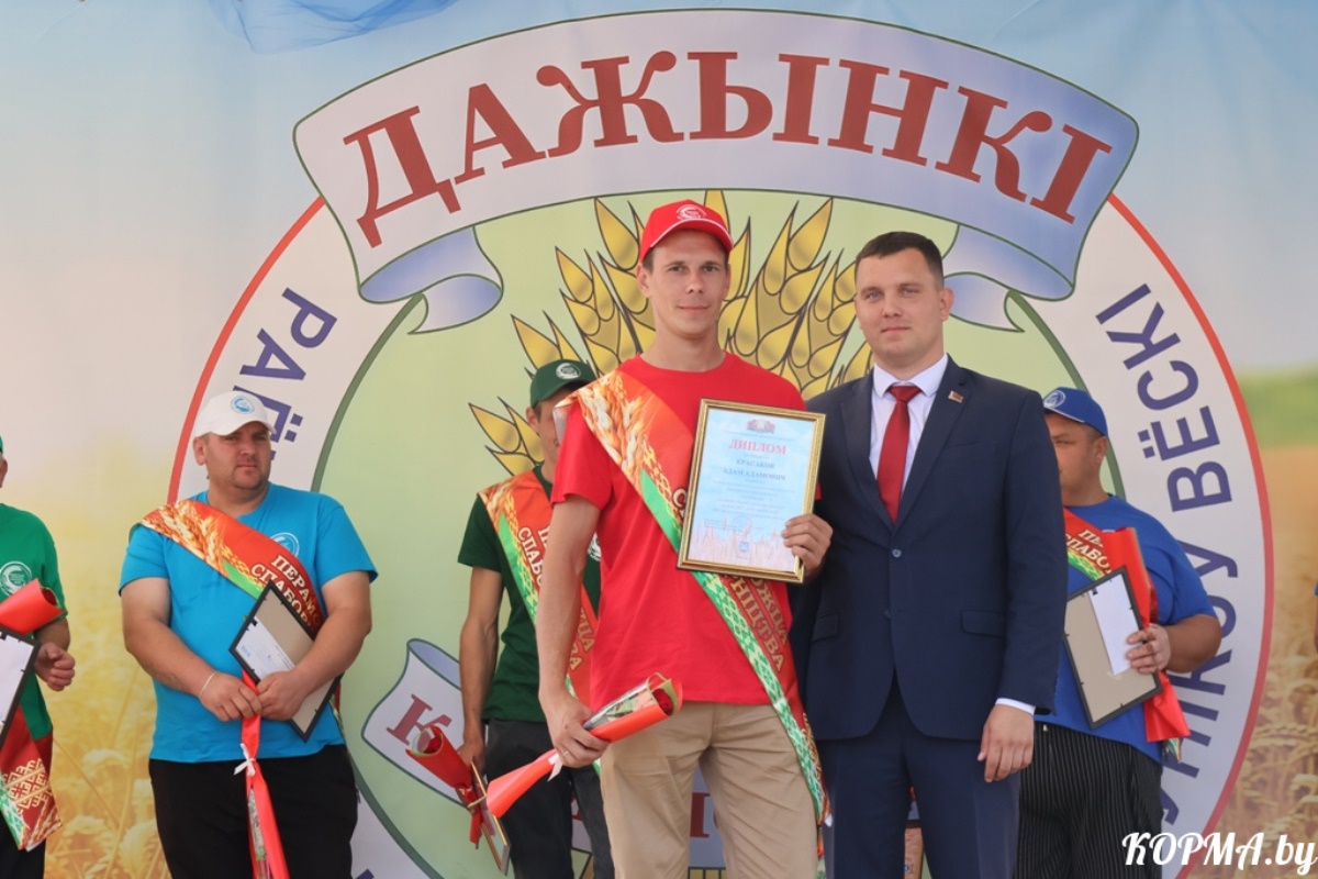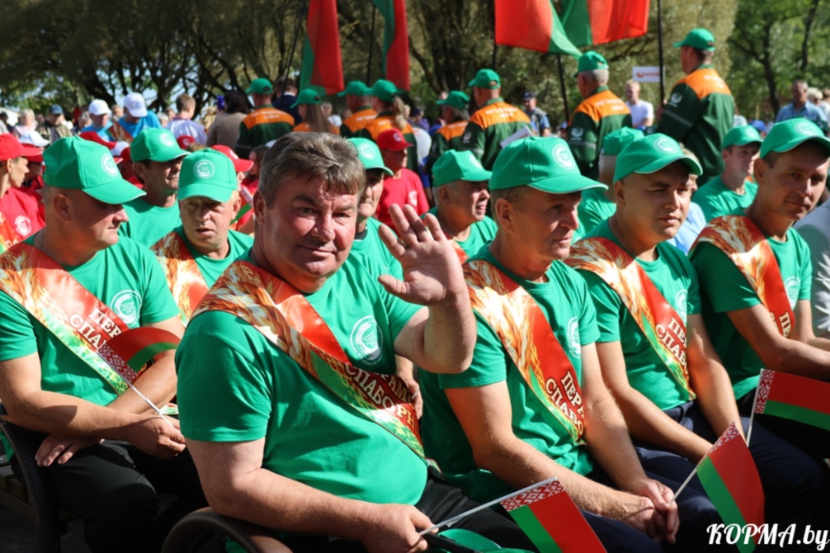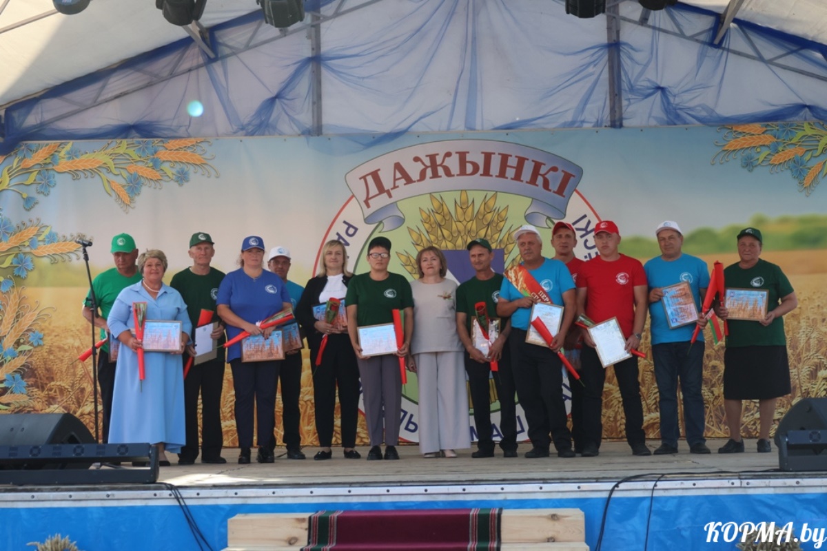 Главным же этапом празднования стало чествование лучших из лучших – тех, чей вклад в республиканский каравай оказался самым весомым, кто трудился в полях от зари до зари, кто знает о хлебной ниве всё. С завершением жатвы их поздравили председатель Кормянского райисполкома Дмитрий Шинкаренко, первый заместитель председателя Кормянского райисполкома Дмитрий Ласицкий, председатель районной организации Белорусского профсоюза работников агропромышленного комплекса Елена Короедова.