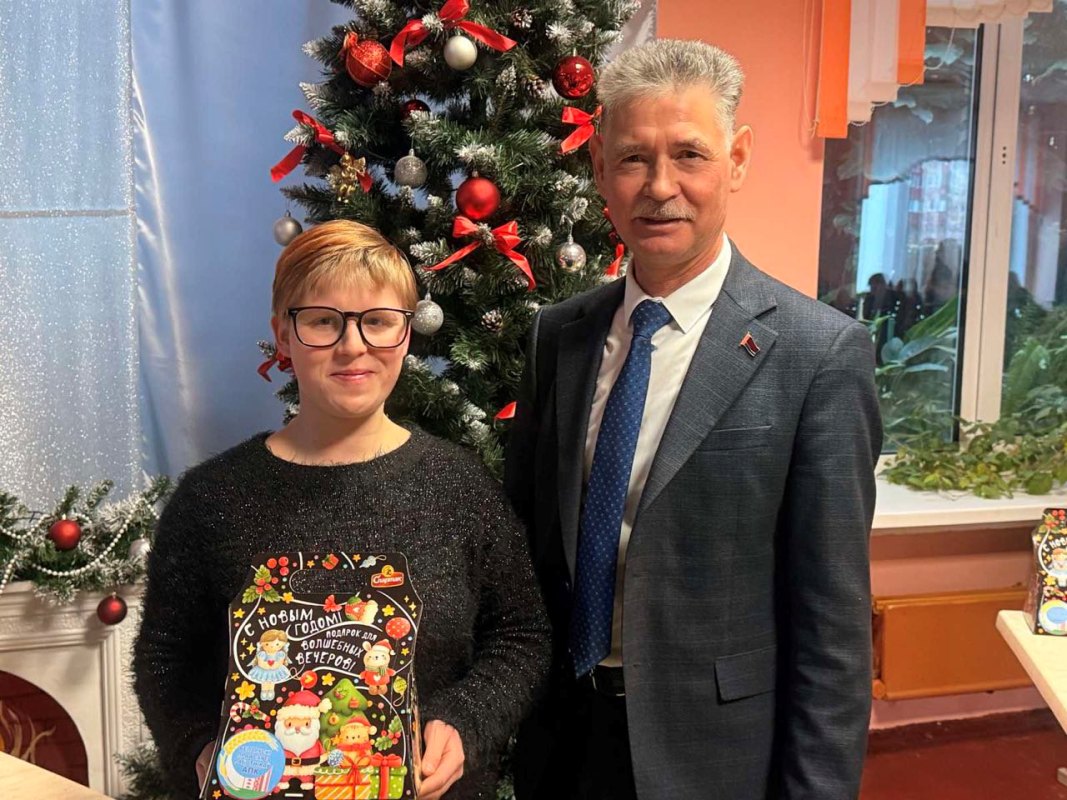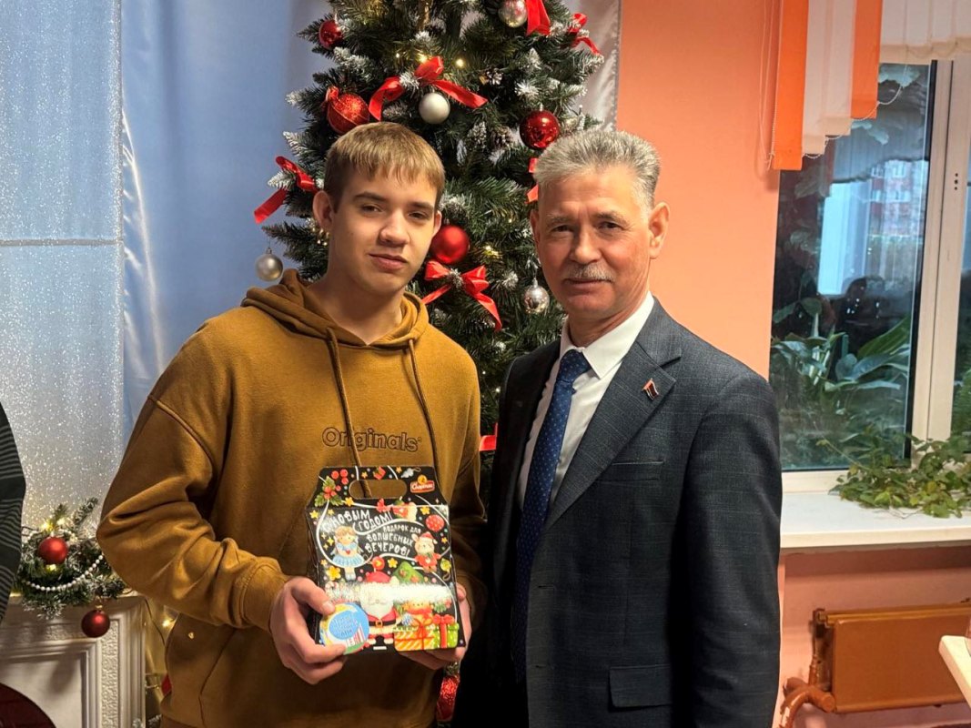 В рамках мероприятия председатель Белорусского профсоюза работников АПК Василий Хватик вручил исполняющему обязанности директора Юрию Шевцову сертификат на сумму 7000 рублей на укрепление материально-технической базы учреждения, приобретения спортинвентаря, Александр Гриньков вручил сладкие подарки 18 учащимся-сиротам.
