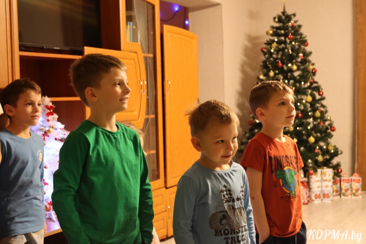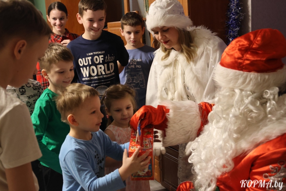 Традиционно в эти праздничные новогодние дни республиканские акции «Наши дети» и «Профсоюзы-детям» шагают по всей стране. В гости к ребятам в детский дом семейного типа городского посёлка Корма заглянули добрые волшебники в лице председателя Кормянского райисполкома Дмитрий Шинкаренко, председателя Кормянского районного Совета депутатов Татьяны Шехтер, активистов общественных объединений РОО «Патриоты Беларуси» Елены Лещенок, районной профсоюзной организации Белорусского профсоюза работников АПК Елены Короедовой, РК ОО «БРСМ» Анастасии Шмурадко.