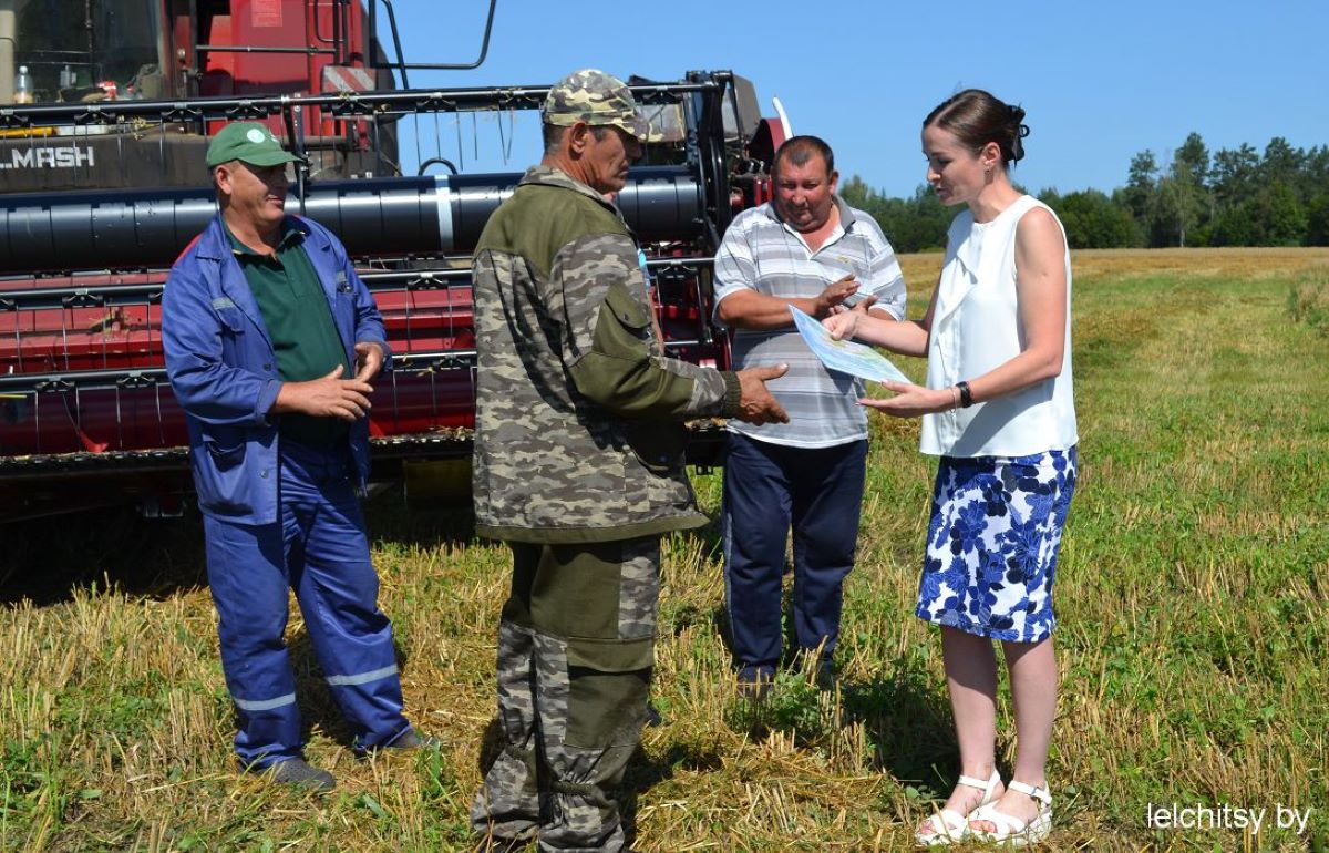 Во время активной жатвы, когда каждый день имеет огромное значение, заместитель председателя-начальник управления сельского хозяйства и продовольствия Лельчицкого райисполкома Екатерина Козик, председатель районной организации Белорусского профсоюза работников агропромышленного комплекса Алла Камыш, главный специалист отдела идеологической работы и по делам молодёжи, заместитель председателя районного отделения Белорусской партии «Белая Русь» Мария Бондарчук и руководитель ОАО «Звезда Полесье» Андрей Некрашевич отправились в поле.