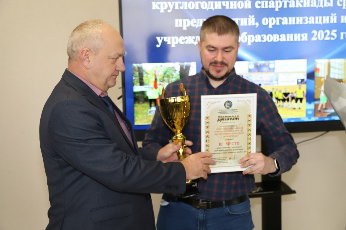 Председатель Мозырской районной профсоюзной организации Белорусского профсоюза работников АПК Александр Шоба лично вручил награды призёрам в группе предприятий и организаций АПК. Чемпионом сезона снова стало государственное предприятие «Совхоз-комбинат «Заря», второе место занял филиал «Мозырская передвижная механическая колонна 27» РУП «Калинковичиводстрой». Замкнуло тройку лидеров государственное предприятие «Экспериментальная база «Криничная». Победители были отмечены кубками и дипломами соответствующих степеней.