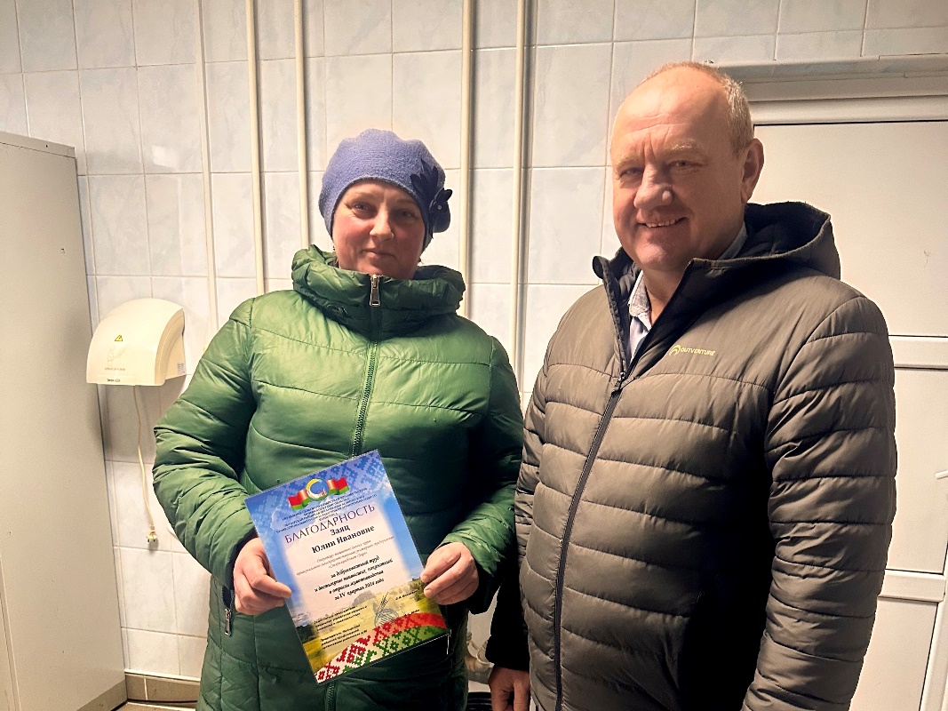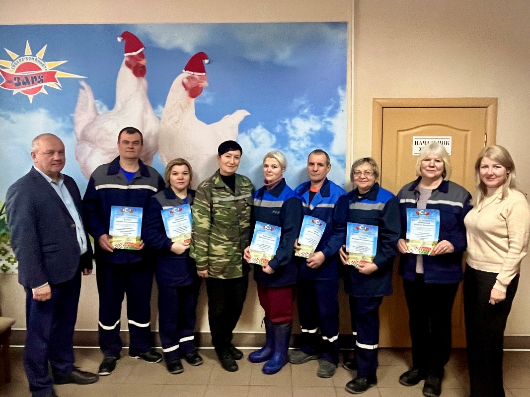 В рамках акции были отмечены операторы машинного доения Юлия Заяц и Антонина Линденкова, животновод Надежда Степаненко, зоотехник Сергей Курпин, работники свиноводческих комплексов Светлана Сивак, Артем Сечко, Елена Бабак, Татьяна Касакевич и Светлана Бабак, слесарь-ремонтник Петр Алышевский, сортировщик Надежда Гусенко, бригадир Надежда Ковшарова, работники птицефабрики Петр Гайчук, Инна Ермакова, Андрей Ткачев, Людмила Мартинович и Екатерина Таболина.