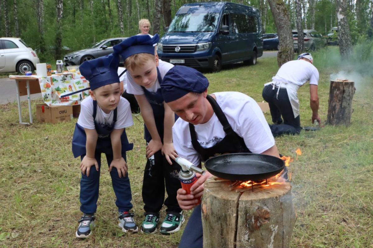 В кулинарном состязании командам предстояло приготовить белорусское национальное блюдо – драники. А чтобы привнести в это испытание нотки азарта и состязательности, организаторы решили, что готовить их необходимо на колоде. Задача перед командами стояла сложная, но выполнимая. От слаженности действий обоих супругов зависел общий результат, ведь на скорость приготовления драников влияли как сноровка главы семьи в розжиге колоды, так и расторопность жены в подготовке смеси по рецепту. При этом подача блюда играла в этом конкурсе немаловажную роль: нужно было не просто подать, но еще и заинтересовать членов жюри, чтобы те захотели продегустировать. Со всеми испытаниями команды справились блестяще, но интрига сохранялась до самого финала.