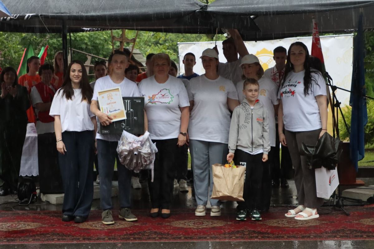 В это же время на спортивной площадке семьи-участницы соревновались в «Семейной эстафете», которая была организована при поддержке отдела спорта и туризма райисполкома. Вот уже где можно было почувствовать поддержку болельщиков: ликование, аплодисменты, шутки и смех не смолкали ни на мгновение! Сами конкурсанты не теряли боевого духа, упорно преодолевая все шуточные препятствия.