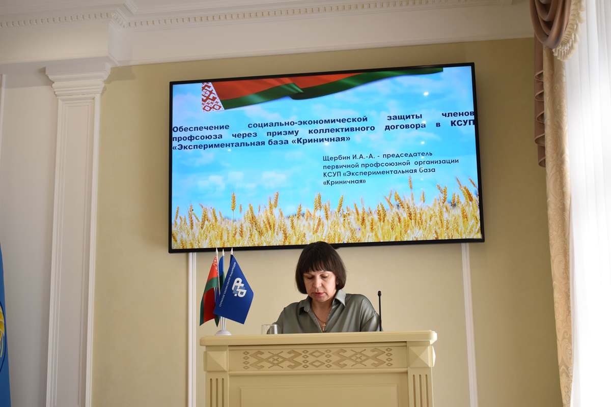 В прениях выступили Иллона Щербин, которая рассказала об обеспечении социально-экономической защиты членов профсоюза КСУП «Экспериментальной базы «Криничная», выделив ключевые моменты коллективного договора.