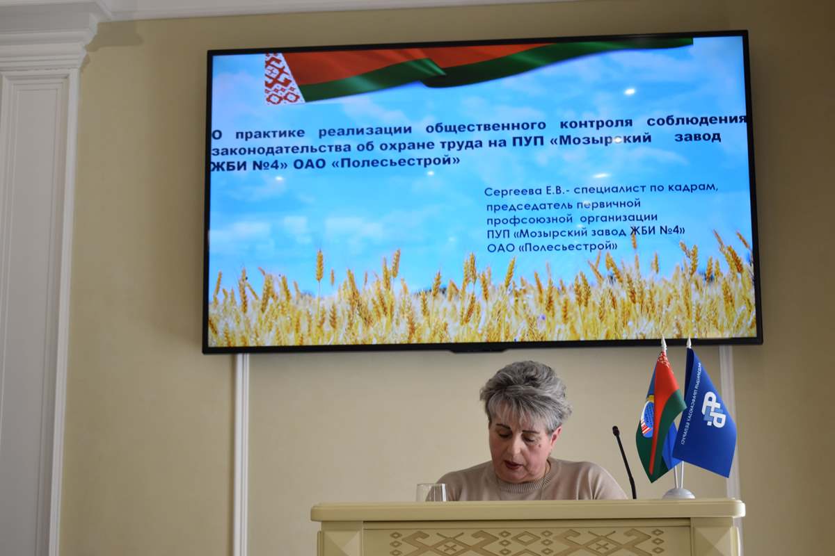 Сергеева поделилась практическими аспектами реализации общественного контроля за соблюдением законодательства в области охраны труда на ПУП «Мозырский завод ЖБИ №4» ОАО «Полесьестрой».