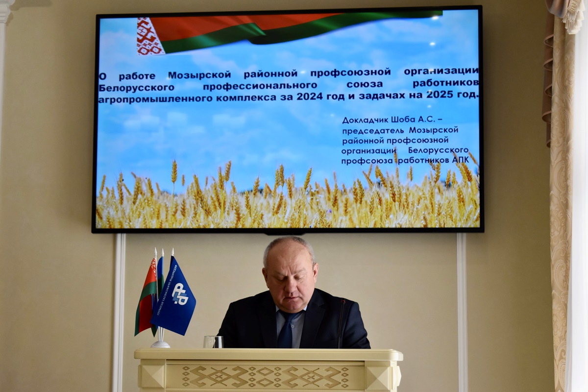 Александр Шоба выразил благодарность профсоюзному активу за плодотворное сотрудничество и отметил, что 2025 год объявлен Главой государства Годом благоустройства, что ознаменует начало Пятилетки качества. Это создает необходимость повышения производительности и качества труда, а также соблюдения трудовых прав работников. -Профсоюзы Беларуси, на протяжении 120 лет являясь ключевым институтом защиты прав трудящихся, должны продолжать свою деятельность, укреплять достигнутые результаты и стремиться к новым достижениям, — подытожил свое выступление председатель Мозырской районной профсоюзной организации работников АПК Александр Сергеевич.