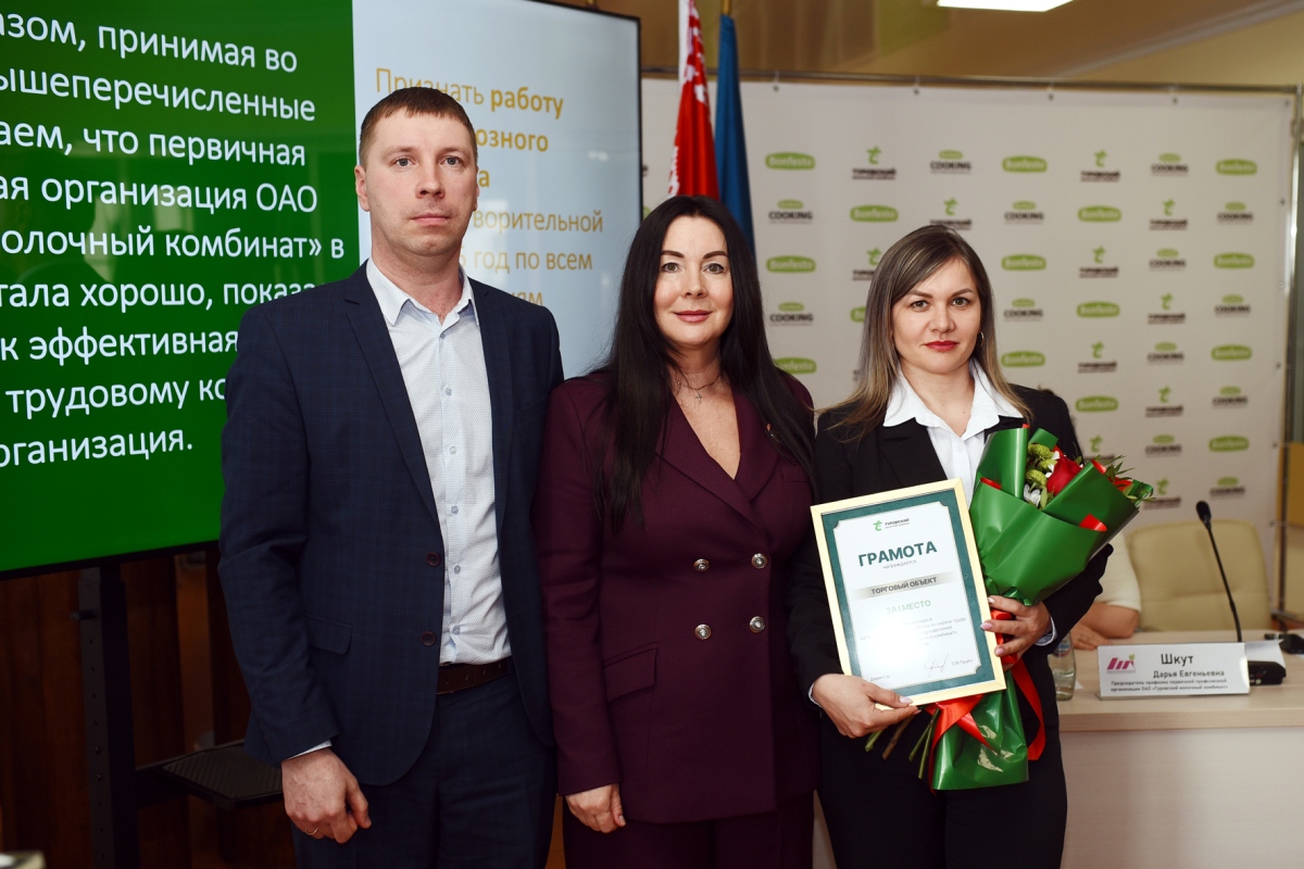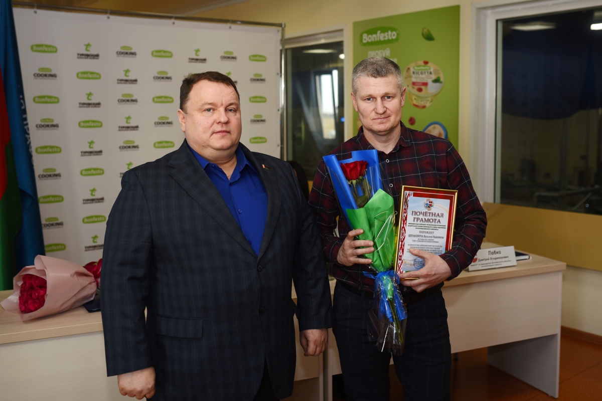 Почетными грамотами и благодарностью были отмечены активные члены профсоюзной организации Туровского молочного комбината: лаборант химико-бактериального анализа Татьяна Бердычевец, грузчик цеха упаковки Василий Шпакевич, оператор линии в производстве пищевых продуктов Ирина Савицкая, ведущий экономист Алена Струк, заведующая производством торгового объекта Татьяна Ширай, уборщик помещений Надежда Швец.