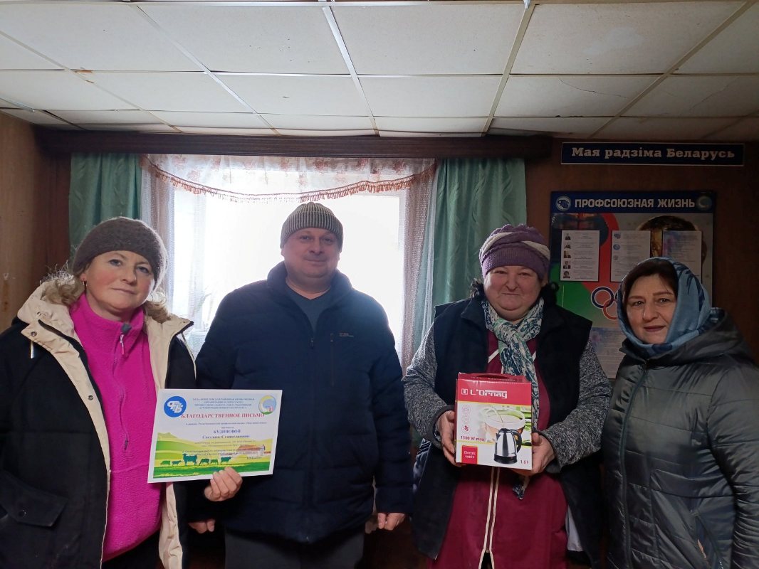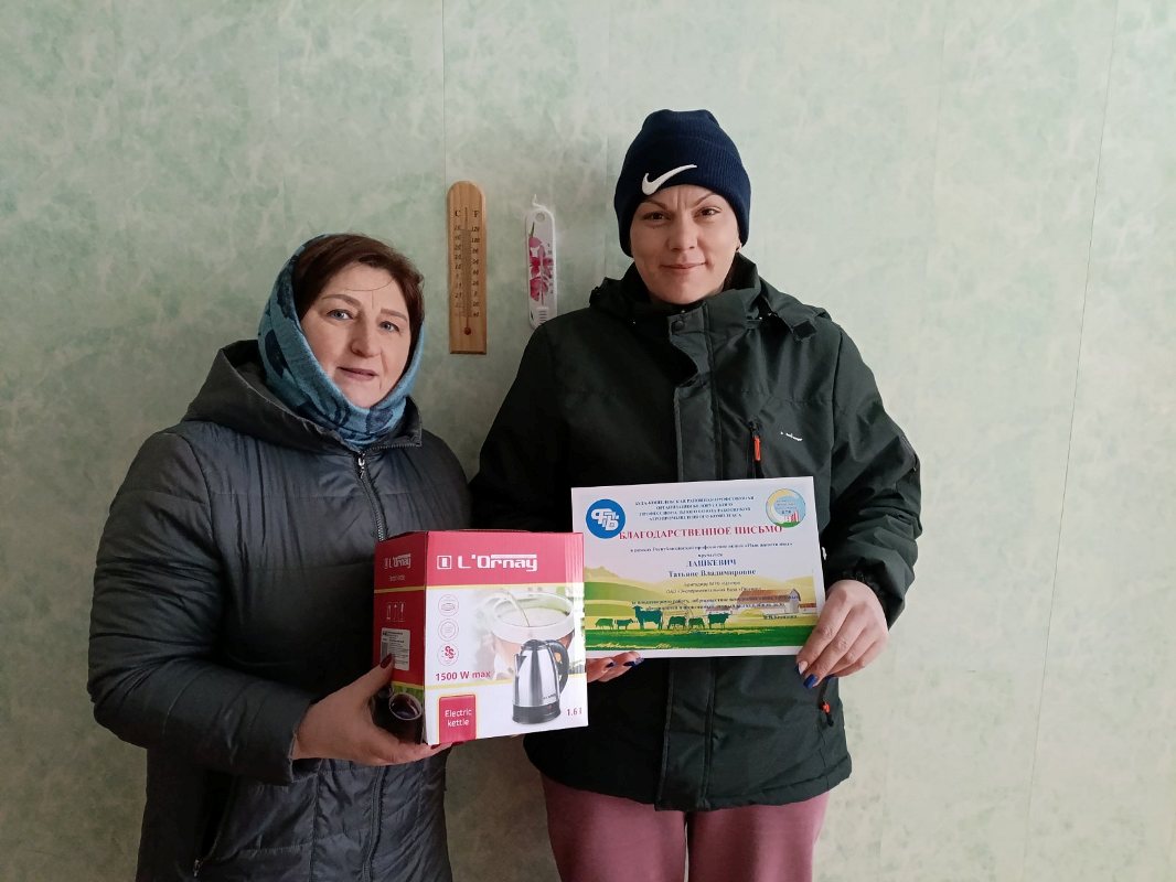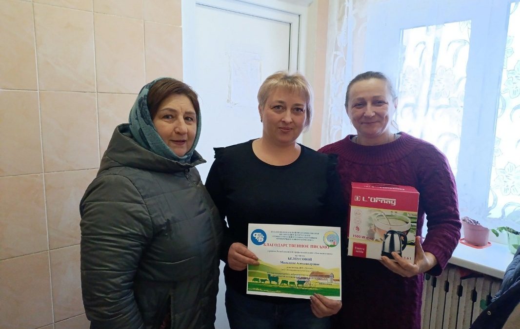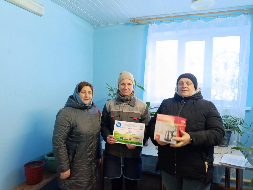 Валентина Васильевна поблагодарила тружеников животноводческой отрасли за плодотворную работу, добросовестное исполнение своих трудовых обязанностей, неоценимый личный вклад в общее дело и поощрила благодарственными письмами оператора машинного доения МТФ «Кленок» Татьяну Ничипоренко, животновода по доращиванию КРС МТК «600» Кристину Авраменко, животновода ДМБ «Пенчин» Мальвину Белоусову, животновода по доращиванию КРС ТФ «Пенчин-2» Наталью Семенову, животновода по доращиванию КРС МТФ «Пенчин-1» Светлану Кудинову, бригадира МТФ «Центр» Татьяну Лашкевич и животновода МТФ «Радеево» Жанну Малинову.