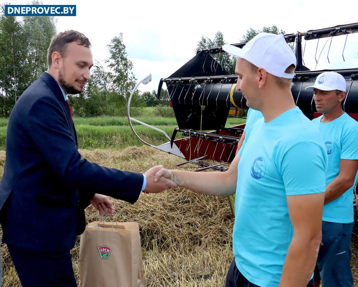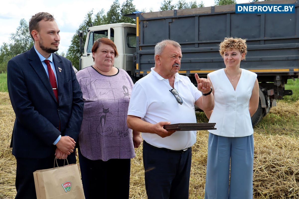 Леонид Стряпушкин, как первый молодой комбайнер-тысячник области, получил подарки и от первого секретаря Речицкого райкома БРСМ Дмитрия Дегтяренко.
