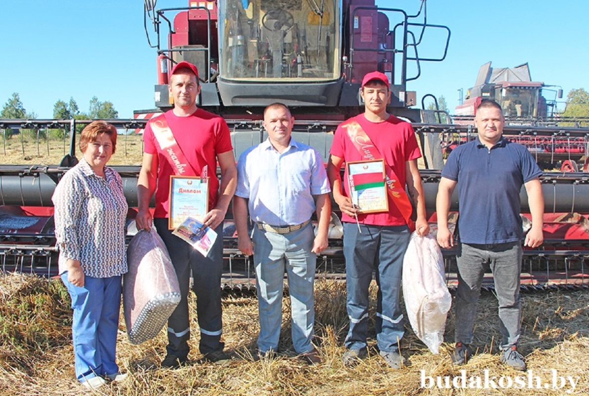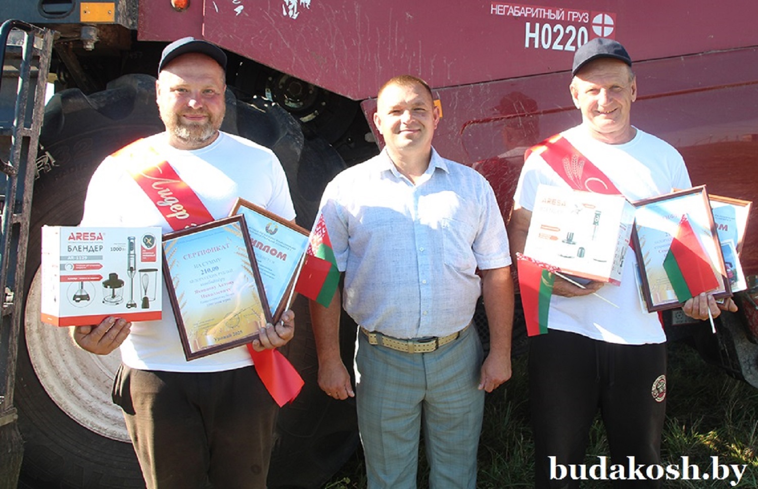 Последние дни жатвы позволили очередным комбайнерам и водителям на отвозке зерна достичь заветных рубежей. Первый заместитель председателя – начальник управления сельского хозяйства и продовольствия райисполкома Александр Ковалев, председатель районной профсоюзной организации работников АПК Валентина Ксензова поздравили аграриев, повязали им ленты лидеров, вручили дипломы от райисполкома и денежные сертификаты. Руководители сельхозпредприятий также приняли участие в чествованиях аграриев, отметив их труд подарками и денежными сертификатами.