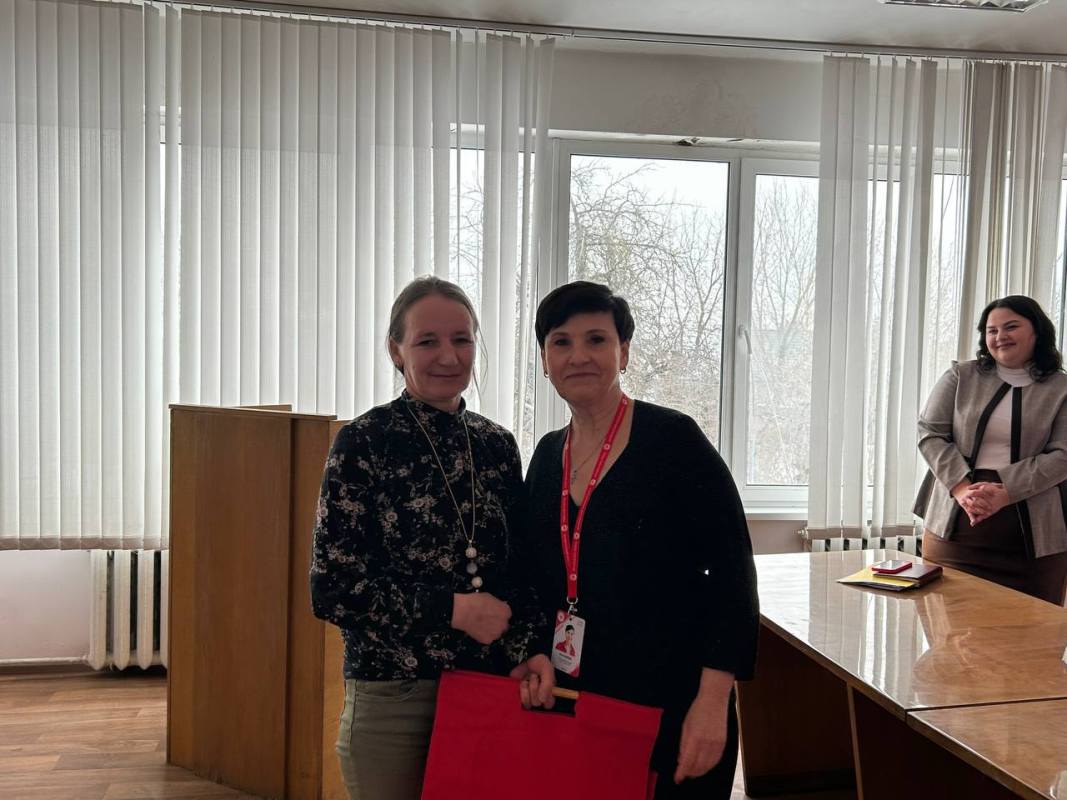 К поздравлениям присоединилась председатель Жлобинской районной организации Красного Креста Ольга Чвырова. Ольга Николаевна вручила подарки Алесе Фисюк и Виктории Навоевой.