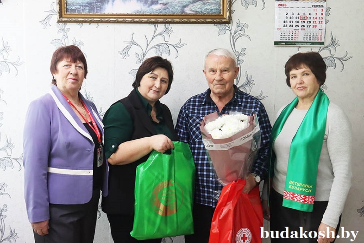 С почетной датой виновника торжества поздравили председатель районной профсоюзной организации работников АПК Валентина Ксензова, председатель районной организации Белорусского Красного Креста Тамара Кравцова, ответственный  секретарь районного совета ветеранов Светлана Николаева и вручила Почетную грамоту от районного совета ветеранов, цветы и ценные подарки.
