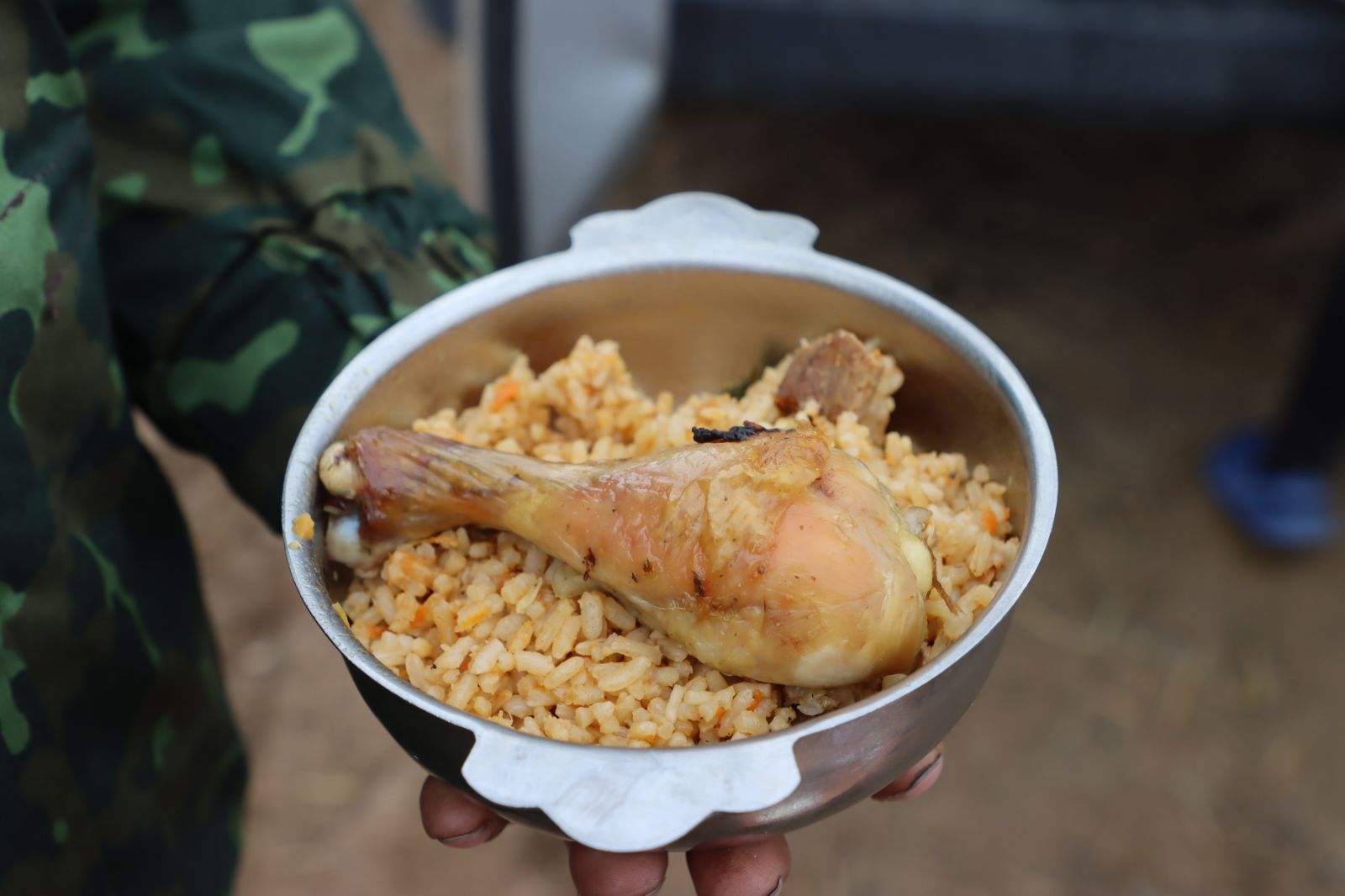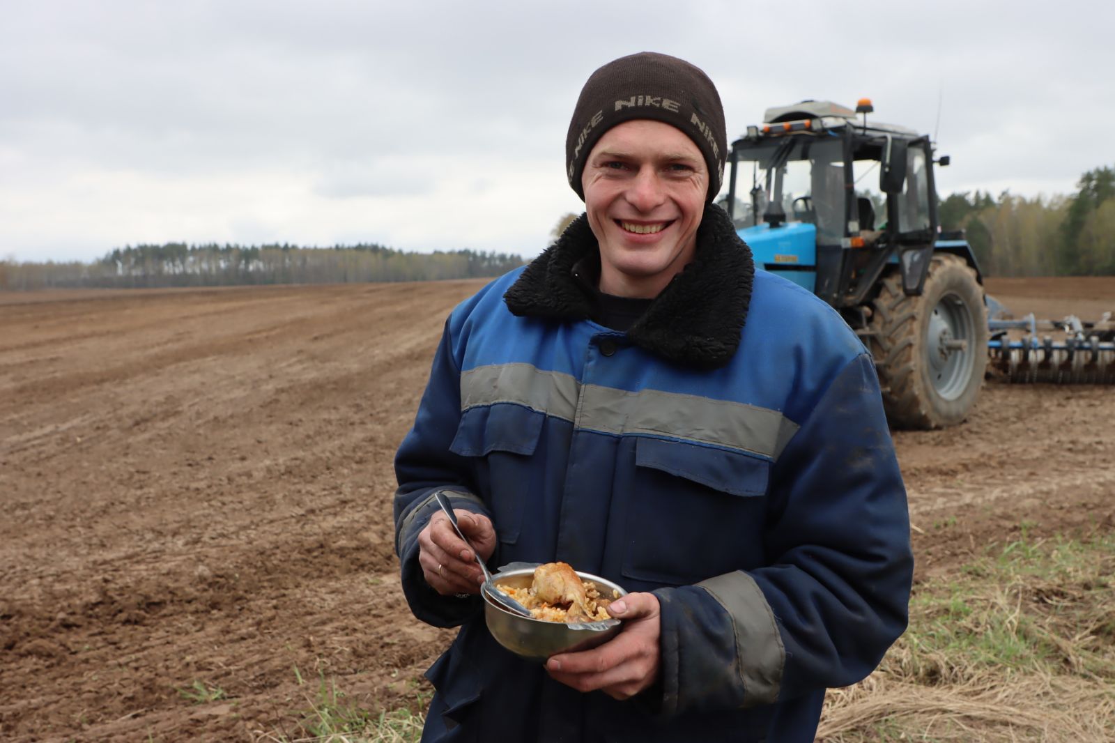 «В каждом хозяйстве по-своему подходят к организации питания. Работники, занятые на приготовлении пищи, владеют знаниями санитарных требований и выполняют их. Режим питания находится в прямой зависимости от продолжительности рабочего времени и принятого распорядка дня, – подчеркивает Александр Шоба. – В меню входят разнообразные первые и вторые блюда. Повара всегда прислушиваются к заказам механизаторов. Они уверены, что от разнообразия питания зависит настроение людей, а значит, и качество их работы. Механизаторы утверждают, что ни одно блюдо в меню в течение недели не повторяется». Например, в день репортажа на первое был гороховый суп, на второе – рис с тушеным мясом и запеченные куриные голени, на десерт – горячий чай, печенье.