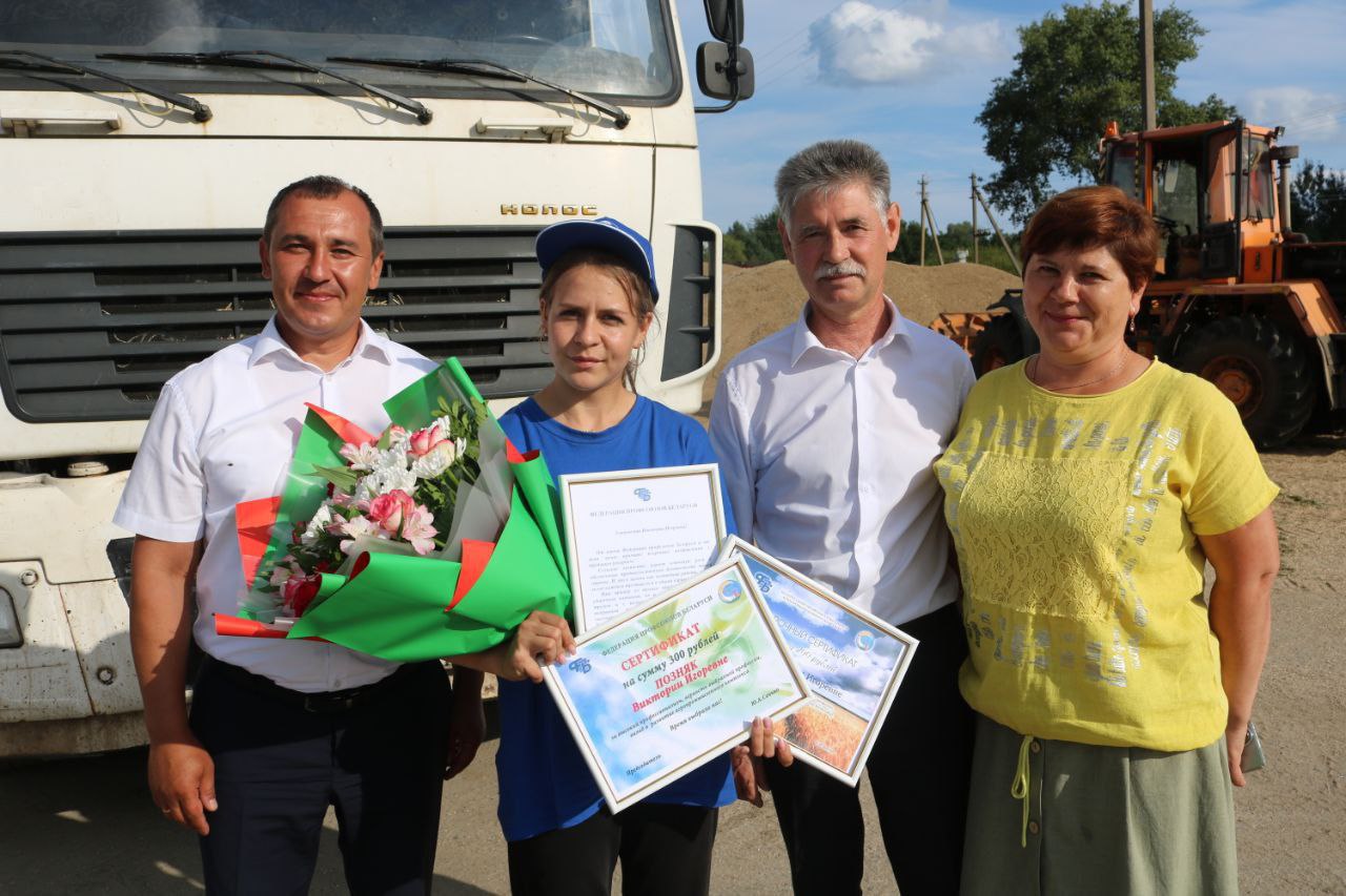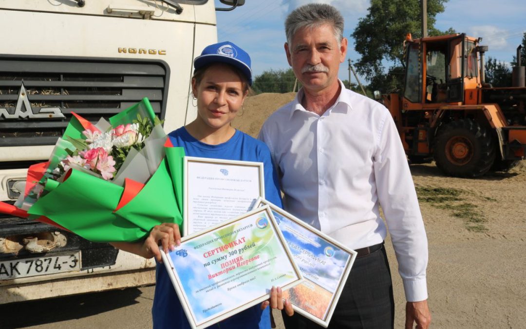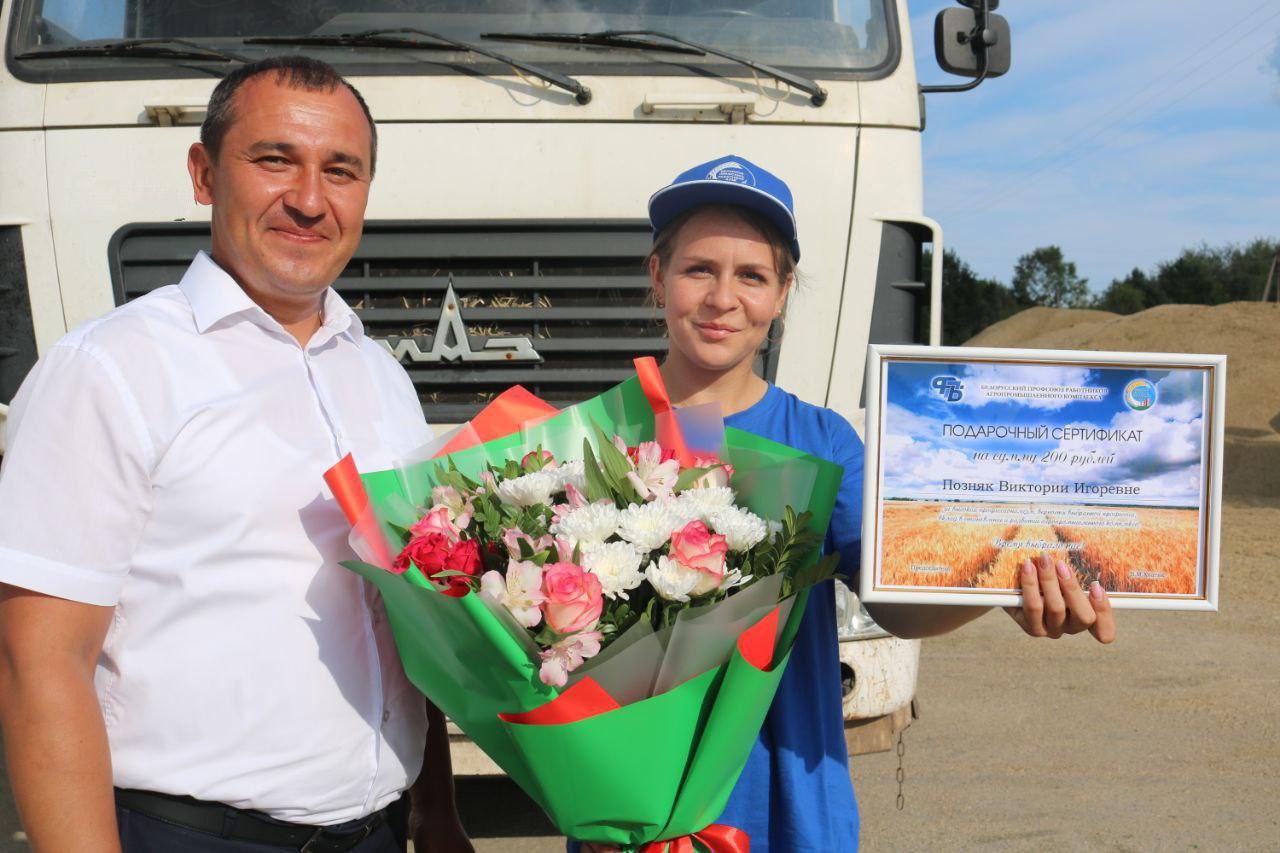 Сегодня от имени председателя федерации профсоюзов Республики Беларусь Юрия Сенько и Республиканского комитета Белорусского профсоюза работников АПК Василия Хватика девушку поздравили глава района Олег Таргонский и председатель Гомельского областного комитета Белорусского профессионального союза работников агропромышленного комплекса Александр Гриньков. Денежные сертификаты, приветственный адрес, и, конечно, роскошный букет цветов для красавицы-агрария стали приятным бонусом к успешному старту нашей землячки!