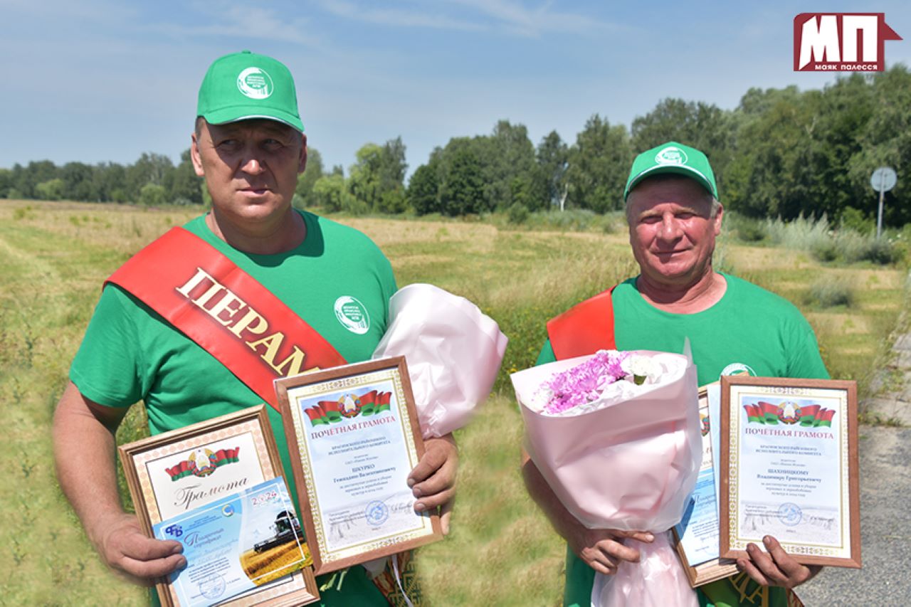 А сегодня к их каждодневным заботам добавилась и почётная миссия: глава районной вертикали и профсоюзный лидер аграриев поздравили первых тысячников – водителей ОАО «Имени Жукова» Геннадия Шкурко и Владимира Шахницкого, вручив Почётные грамоты и денежные сертификаты.