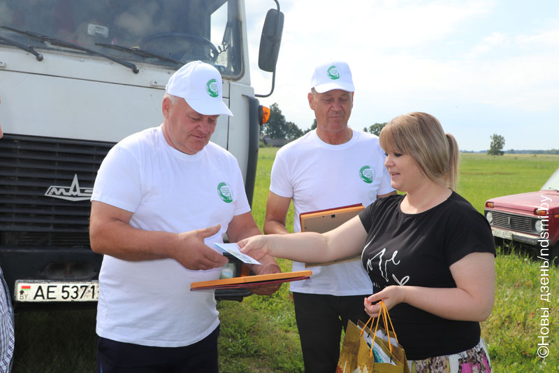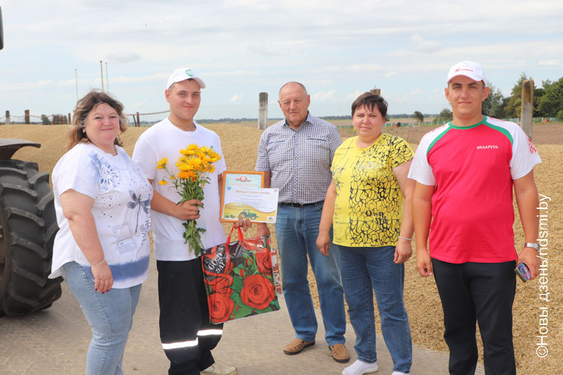Хлеборобов с этим трудовым успехом на рабочих местах поздравили и вручили почётные грамоты, денежные премии и подарки председатель районной профсоюзной организации работников АПК Геннадий Симанович, председатели профкомов сельхозпредприятий. А к поздравлениям, прозвучавшим в адрес Константина Шевчука, присоединилась первый секретарь райком БРСМ Анастасия Яковенко.
