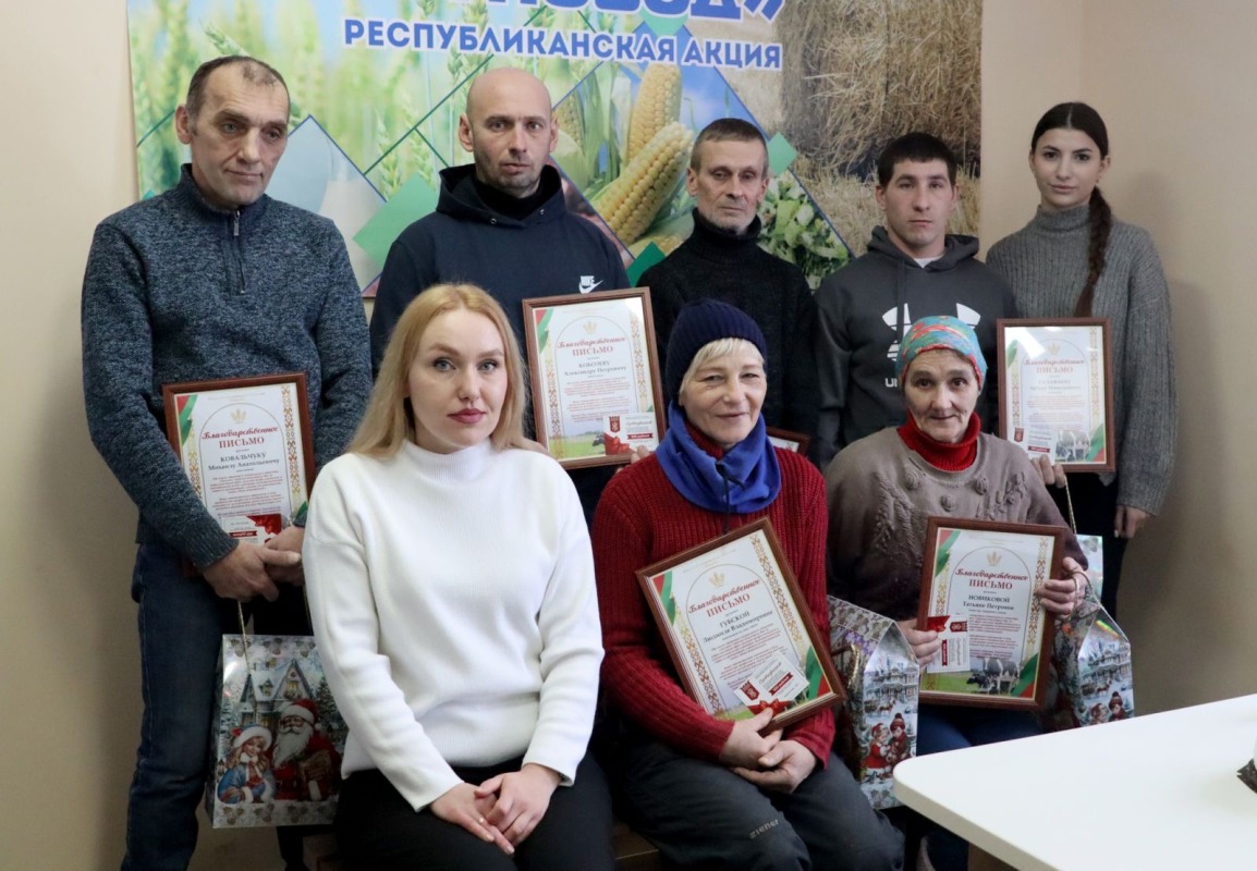 Она вместе с председателем профкома сельхозпредприятия Александрой Лисовской за добросовестный труд вручила благодарственные письма и подарочные сертификаты на приобретение продукции Жлобинского мясокомбината шести работникам комплекса: животноводам Михаилу Ковальчуку, Александру Кобозеву, Артуру Галафаеву, Игорю Крупенкову, оператору машинного доения Татьяне Новиковой и животноводу по уходу за молодняком крупного рогатого скота Людмиле Губской.