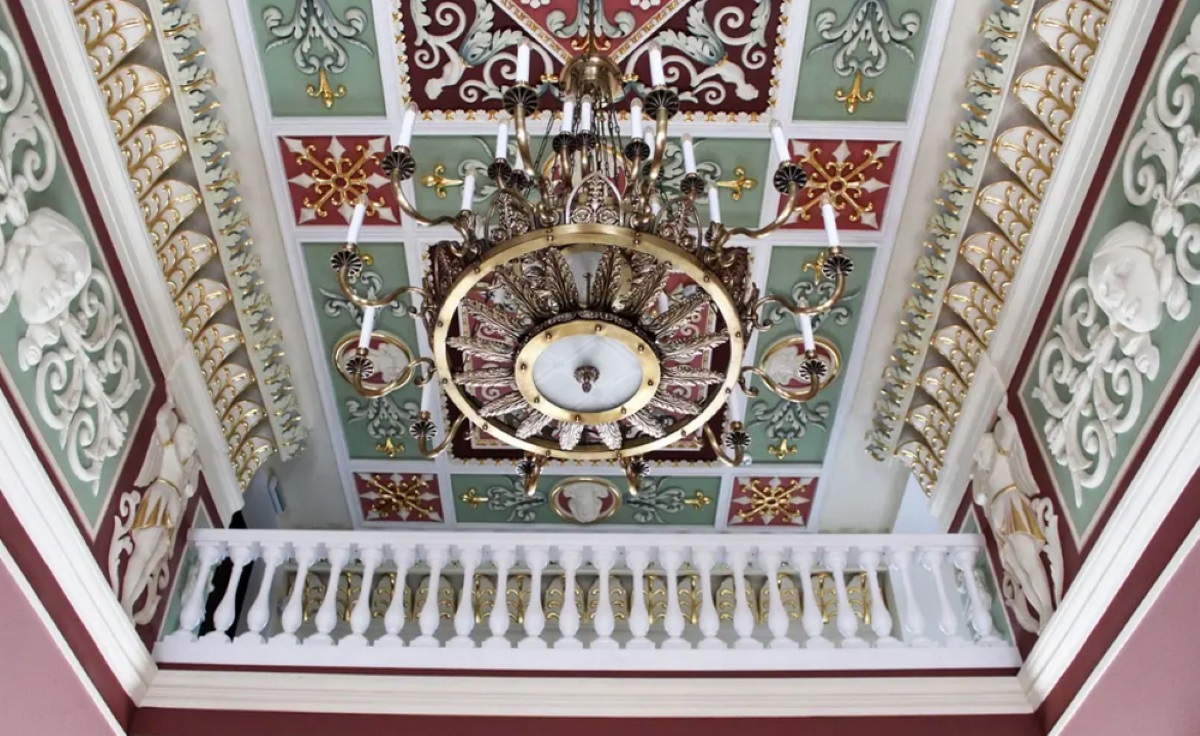Экскурсанты побывали в Парадных залах дворца. Это один из наиболее сохранившихся образцов дворцовых интерьеров XIX века. В залах музея — красивые зеркала и люстры, подсвечники и часы, антикварные варианты интерьера и старинной мебели. Восстановлены необычные потолки и оригинальные камины.