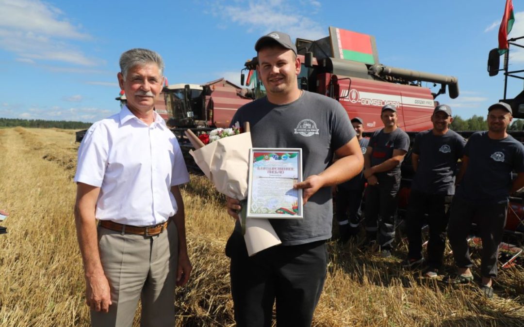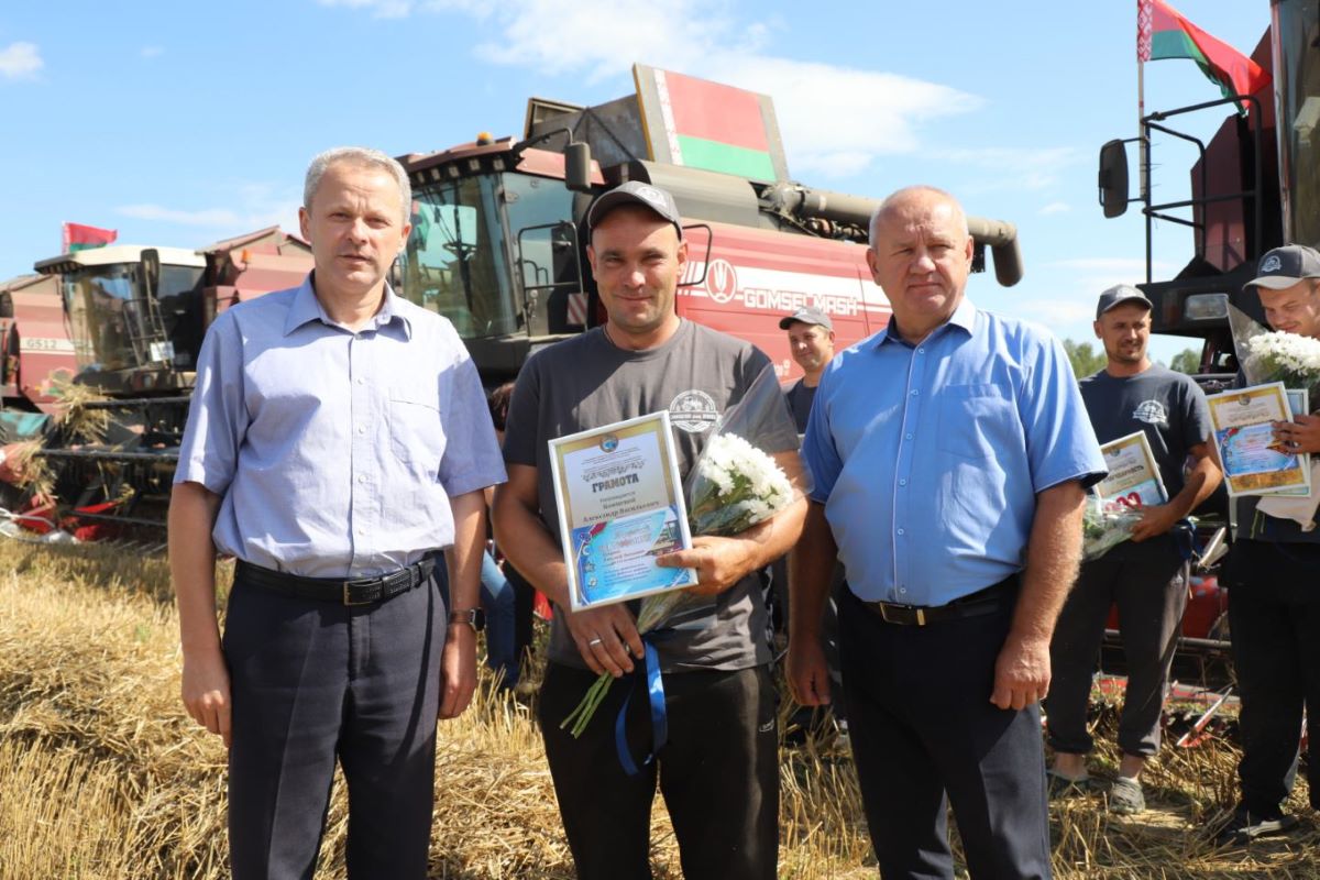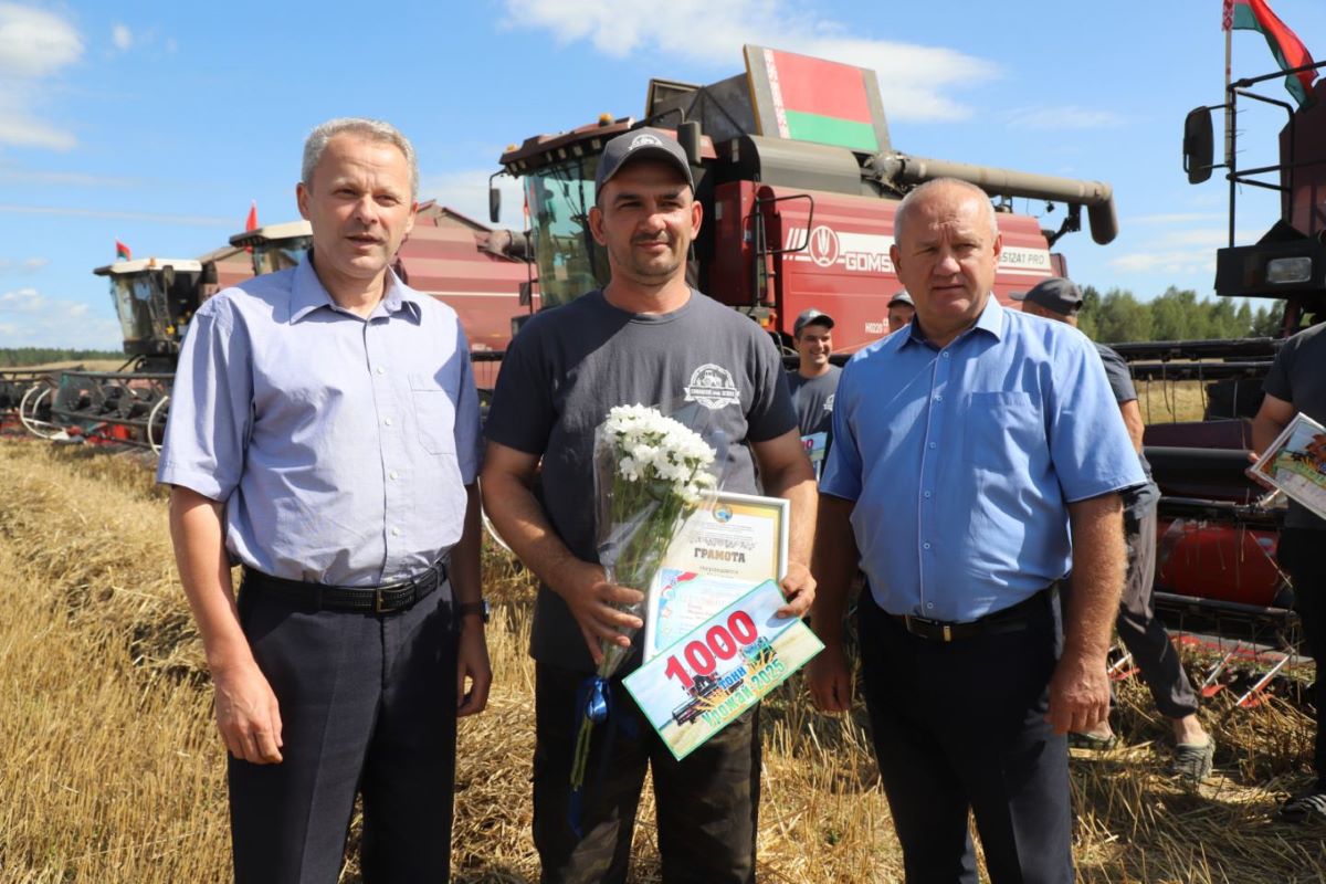 Александр Гриньков поздравил хлеборобов с трудовыми успехами, пожелал еще более высоких достижений и отметил, что в Гомельской области свыше тысячи тонн намолотили уже 200 экипажей. Каждому тысячнику были вручены Благодарственные письма Гомельского облисполкома и обкома профсоюза АПК. «Ваш значительный трудовой успех на хлебной ниве вызывает глубокое уважение. Мы гордимся людьми, которые своим упорным трудом и ответственным отношением к делу демонстрируют истинную преданность земле и ее главному богатству – хлебу», – сказал профсоюзный лидер аграриев области.
